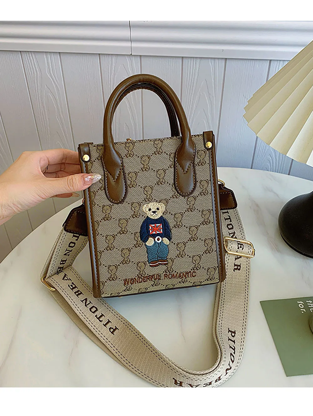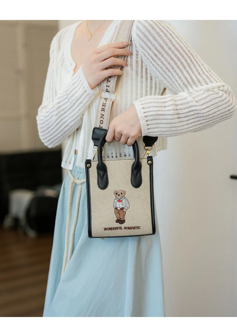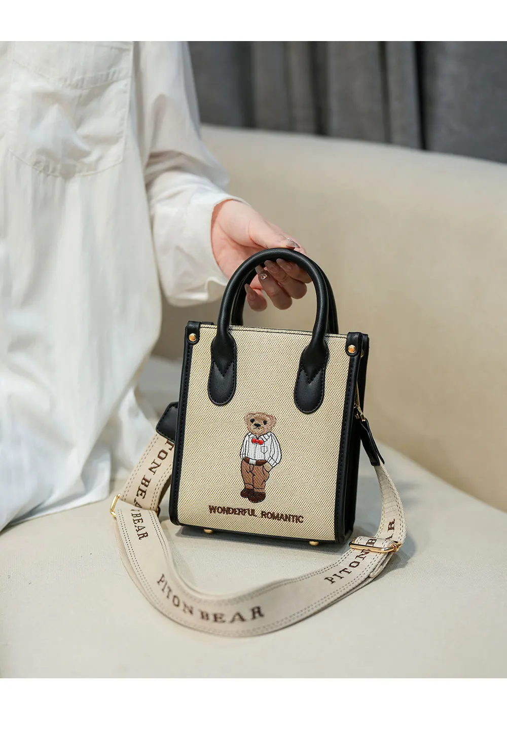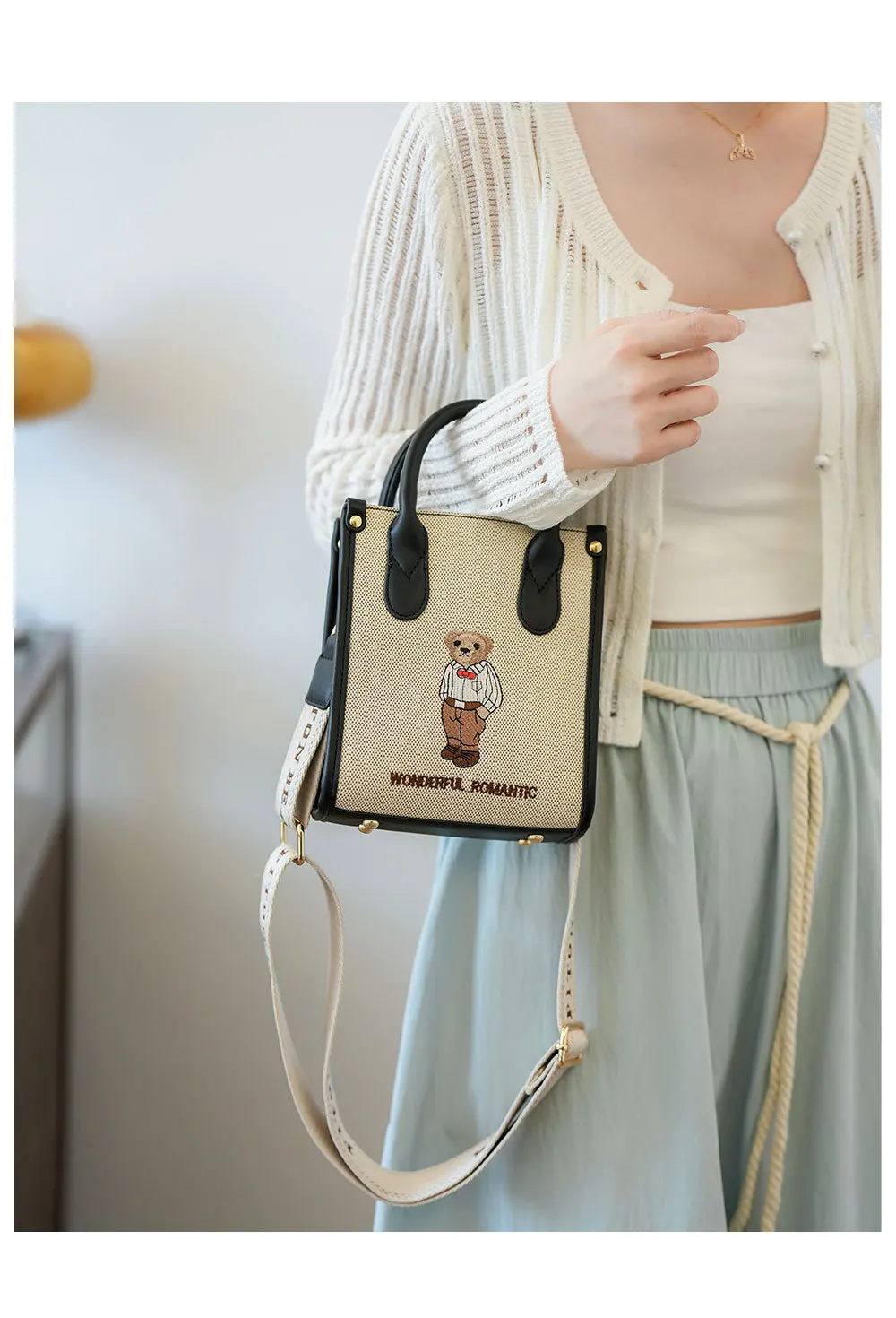 Borsa a tracolla da donna con orso ricamato elegante estivo 2025 – Spaziosa borsa a tracolla, borsa alla moda, borsa tote casual carina