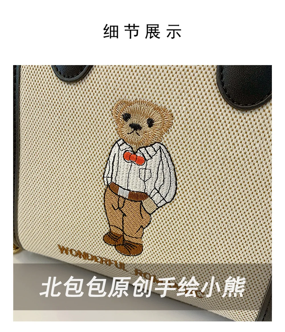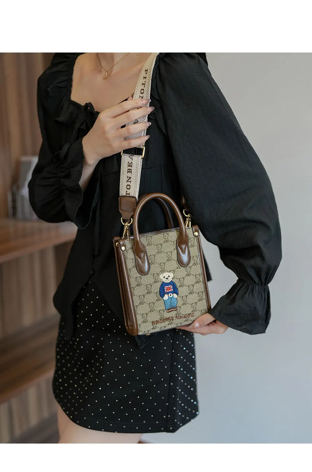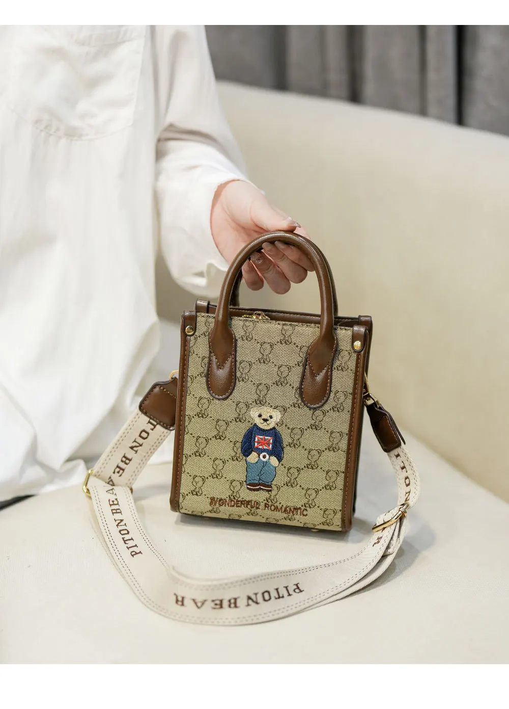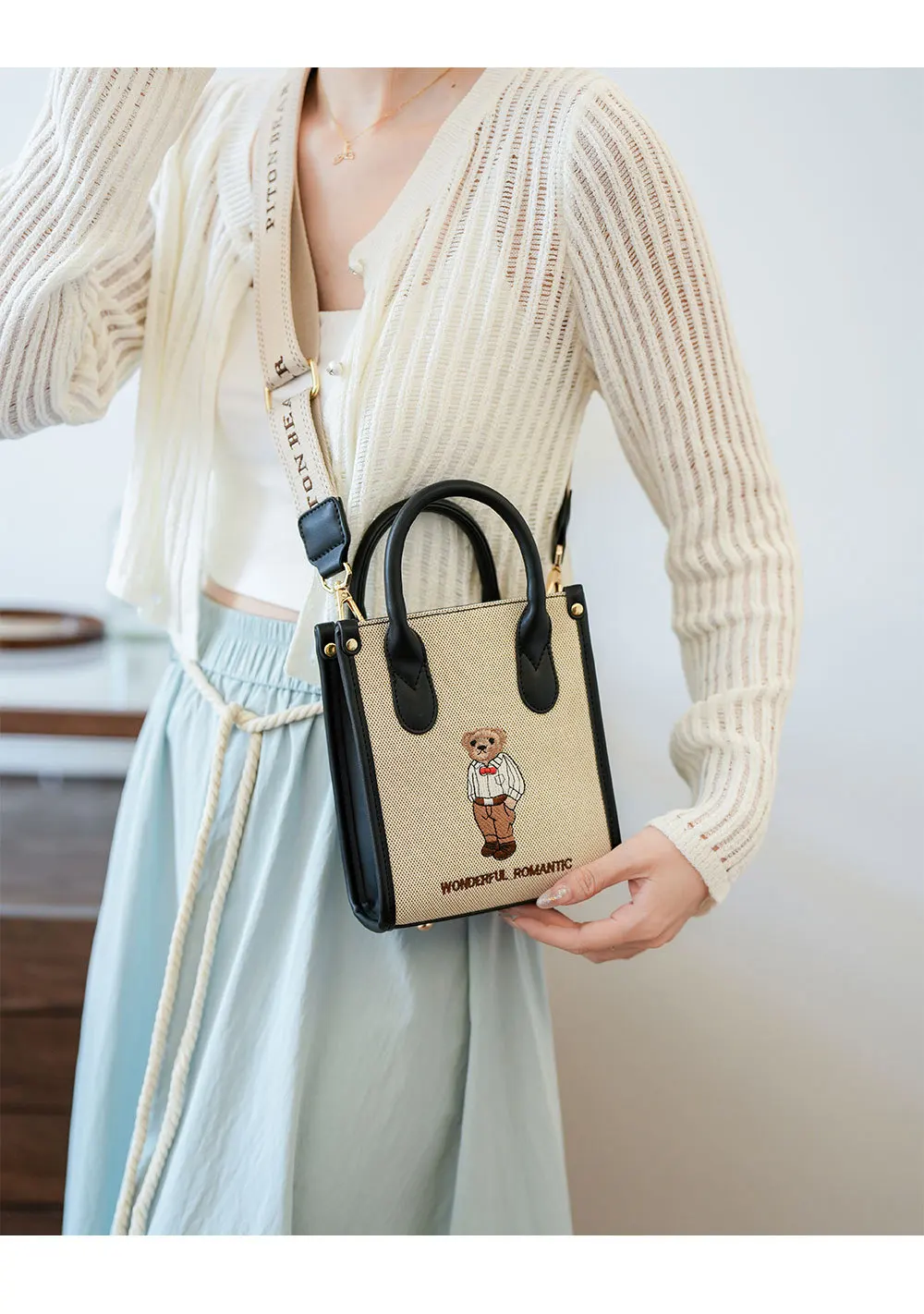 Borsa a tracolla da donna con orso ricamato elegante estivo 2025 – Spaziosa borsa a tracolla, borsa alla moda, borsa tote casual carina