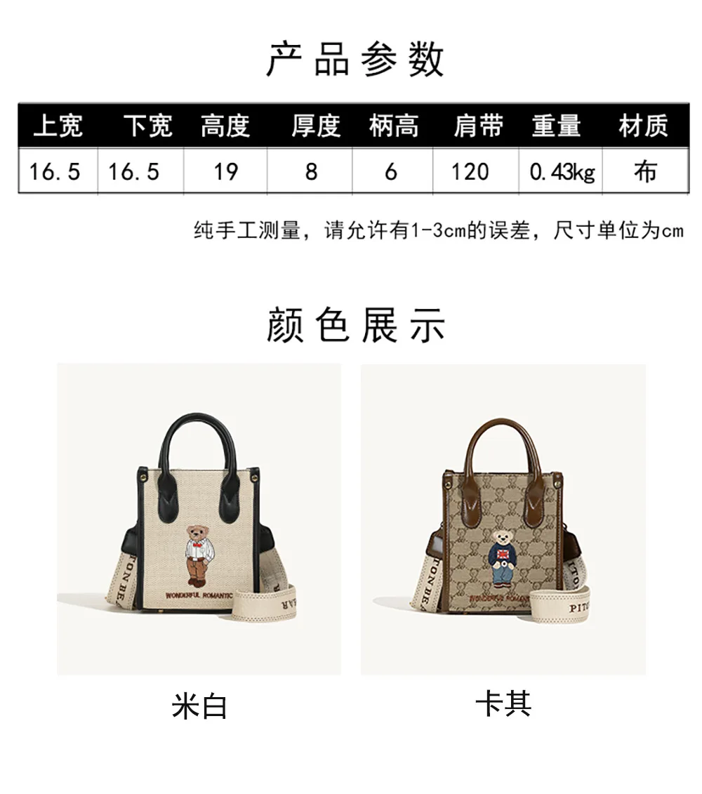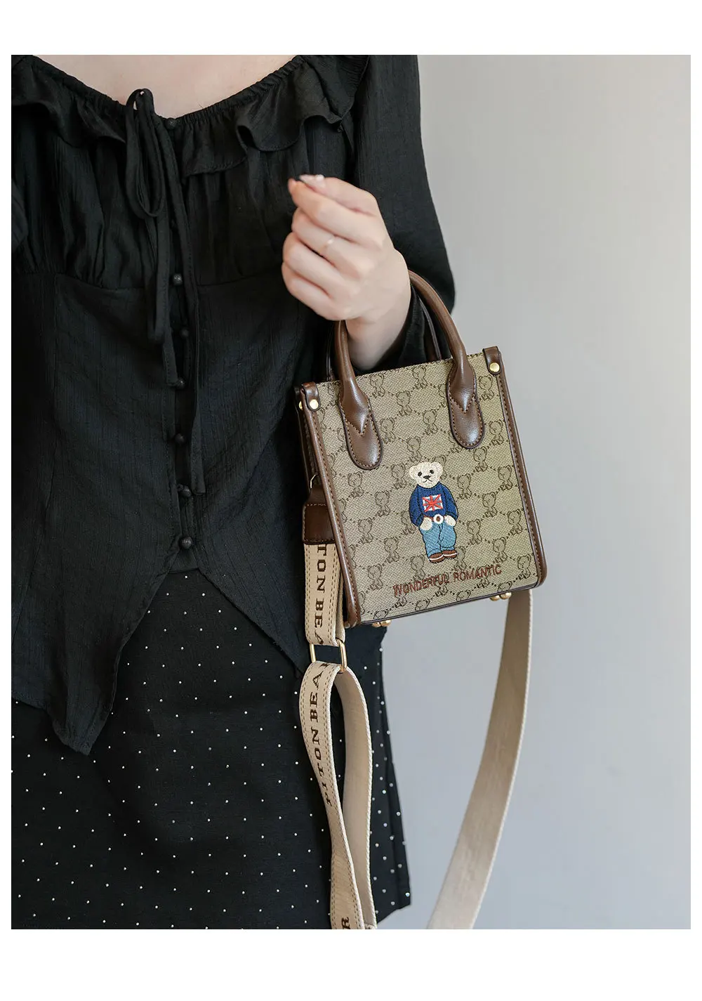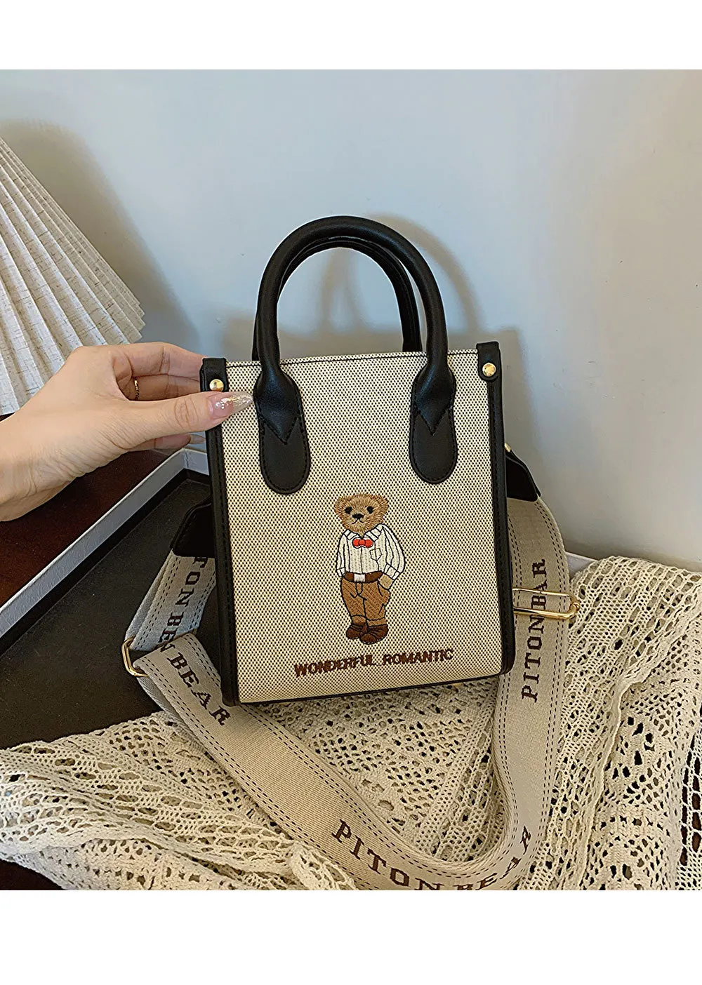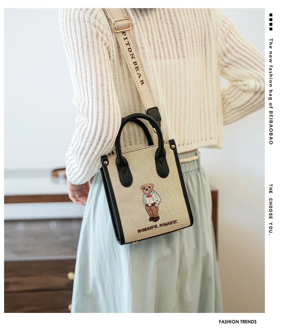 Borsa a tracolla da donna con orso ricamato elegante estivo 2025 – Spaziosa borsa a tracolla, borsa alla moda, borsa tote casual carina