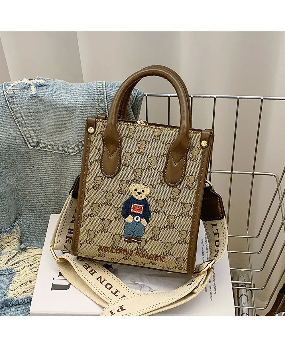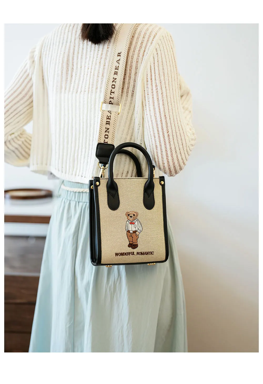 Borsa a tracolla da donna con orso ricamato elegante estivo 2025 – Spaziosa borsa a tracolla, borsa alla moda, borsa tote casual carina