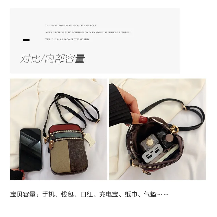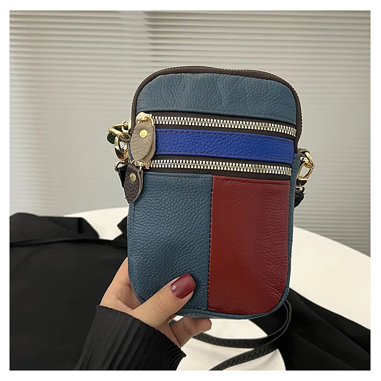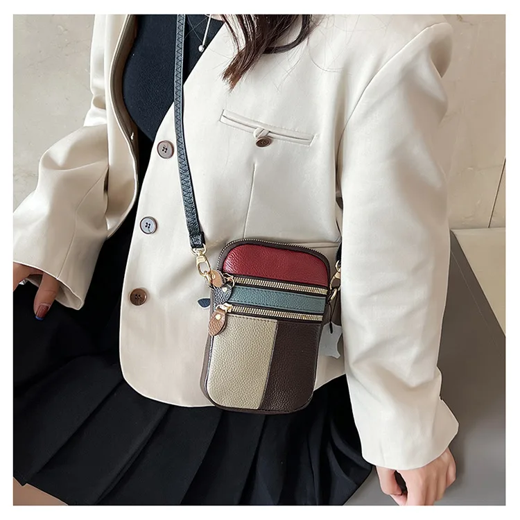 Borsa a tracolla da donna in morbida pelle di nuova moda con cerniera multipla morbida pelle bovina per ragazze piccola borsa per cellulare colore cuciture colore casuale