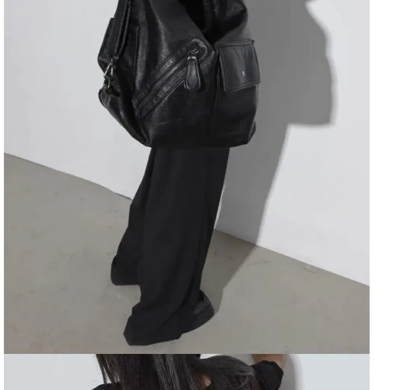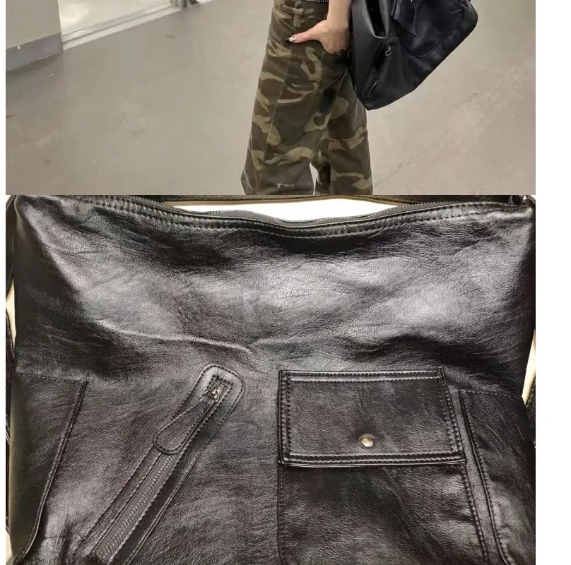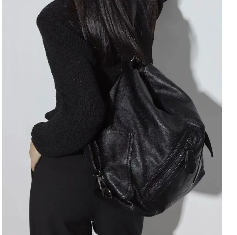7 recensioni per Borsa a tracolla da donna vintage nera Borse a tracolla da moto di lusso semplici Zaini multifunzionali di grande capacità di design