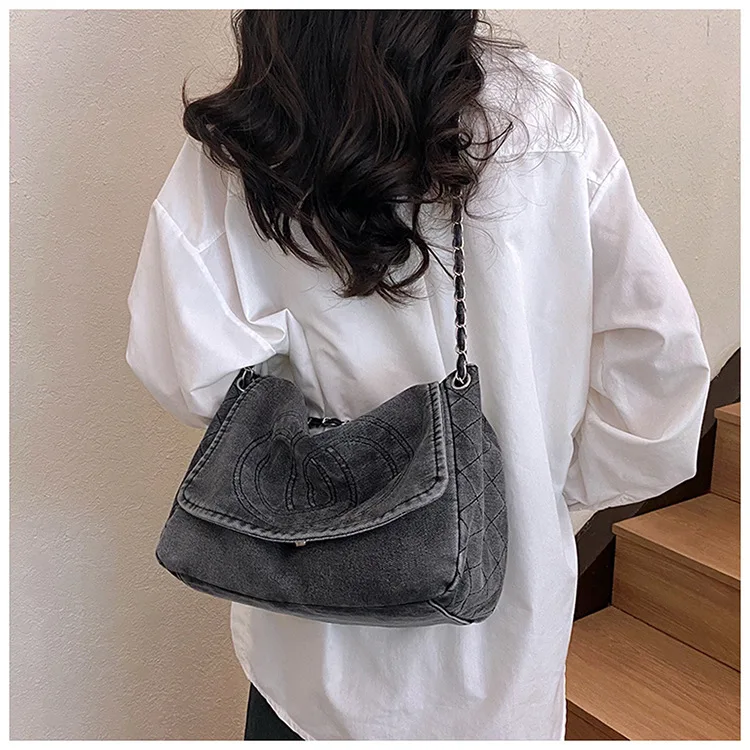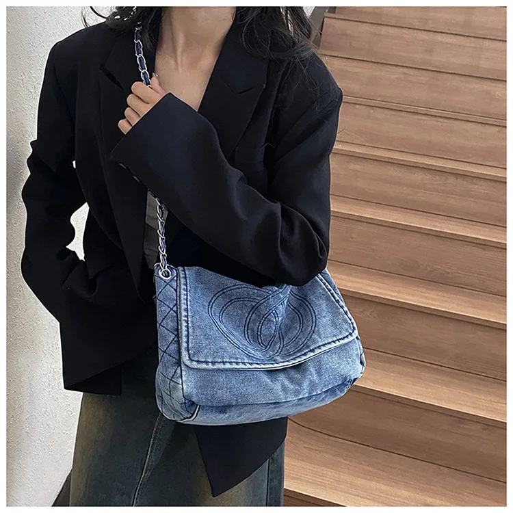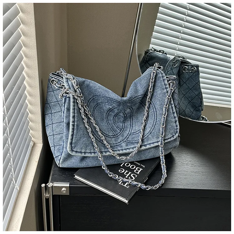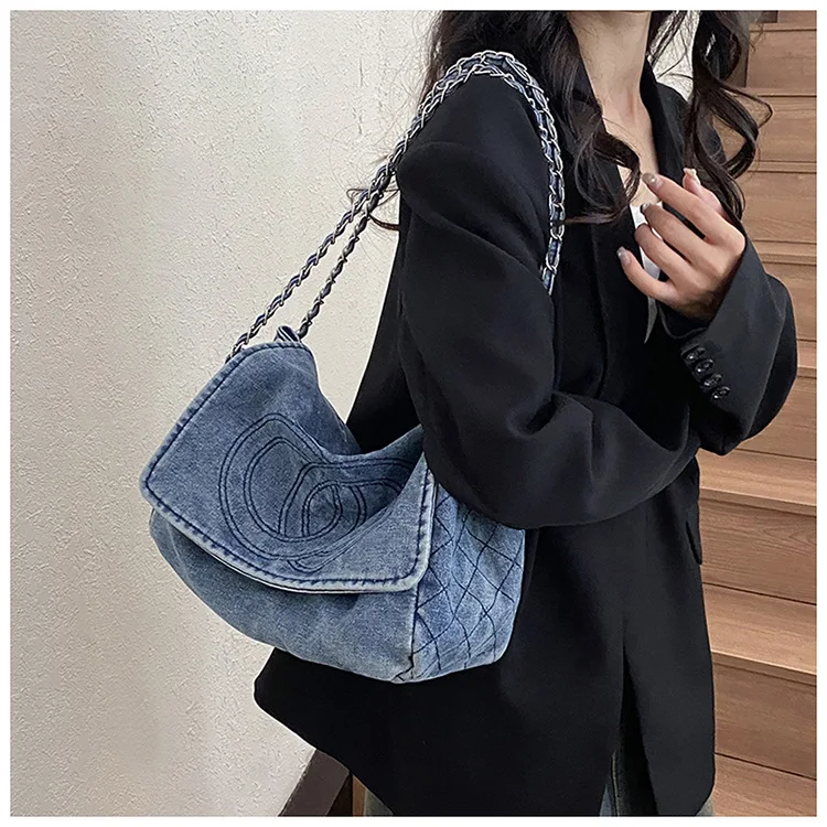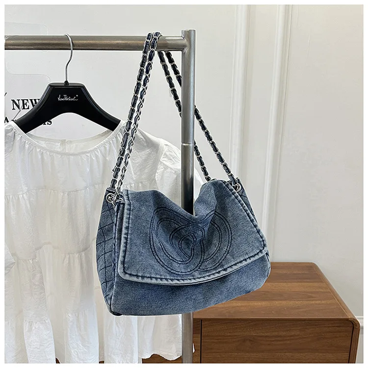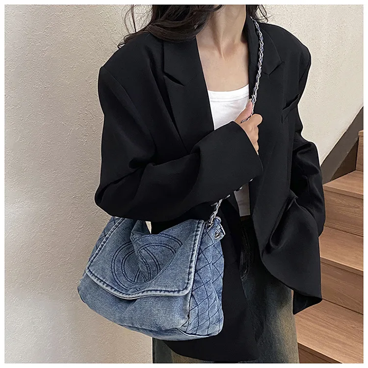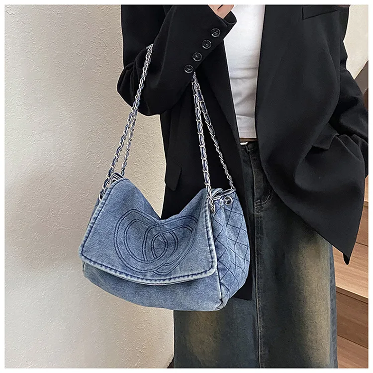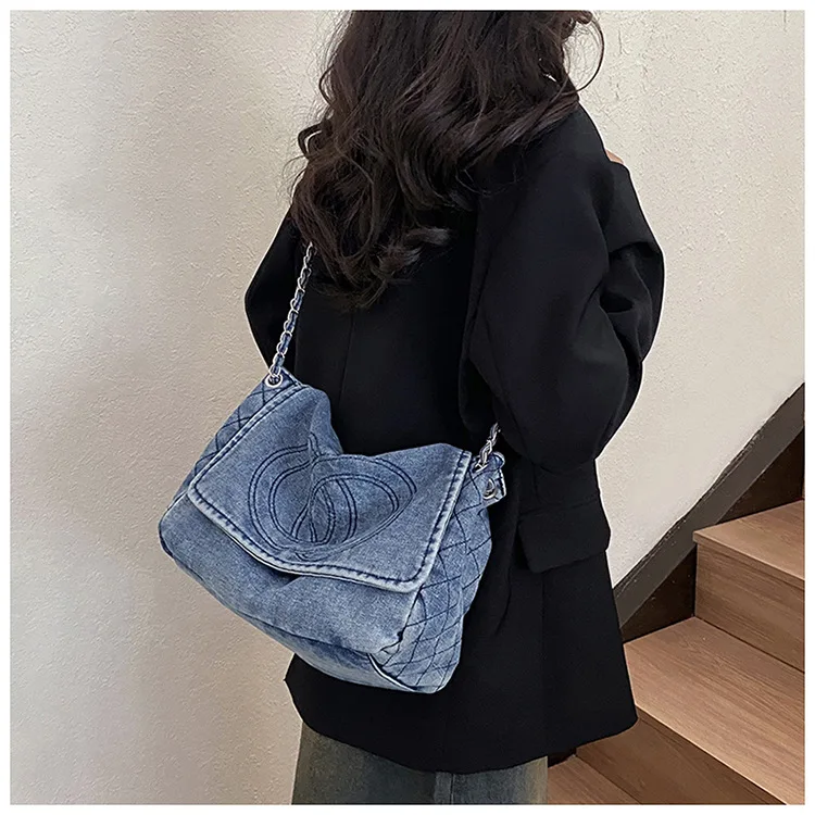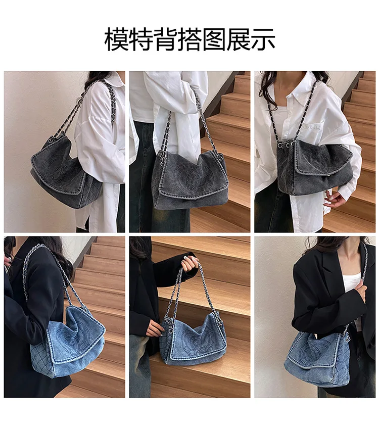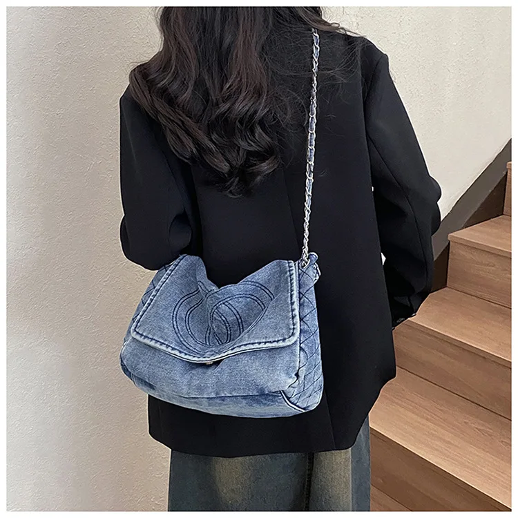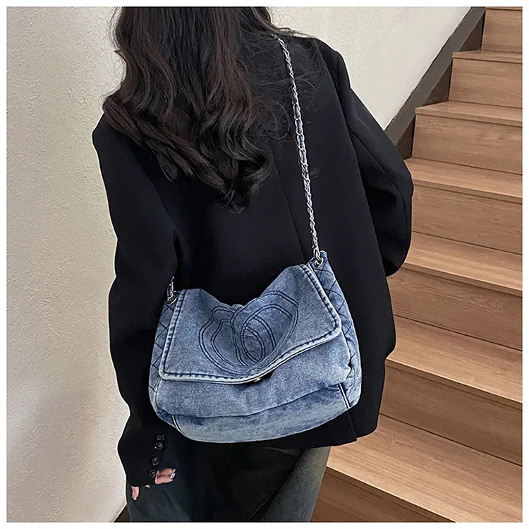 Borsa a tracolla in denim retrò da donna: borsa a tracolla spaziosa e alla moda, borsa vintage elegante, borsa versatile e casual chic