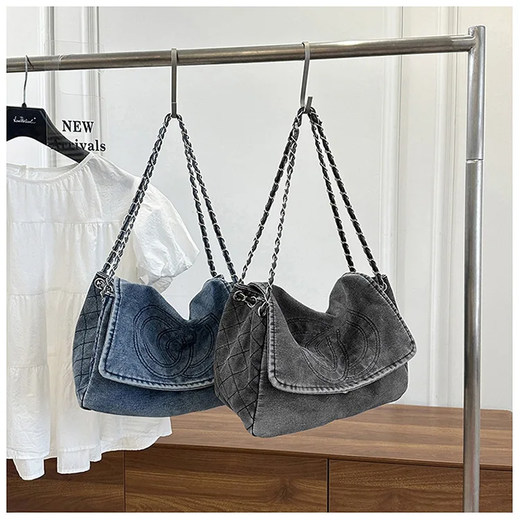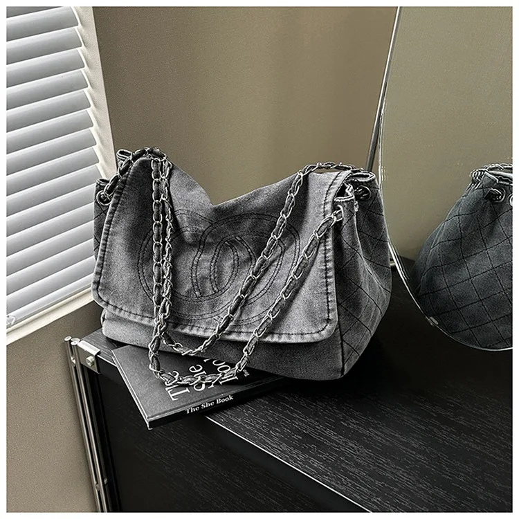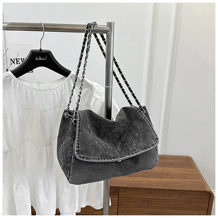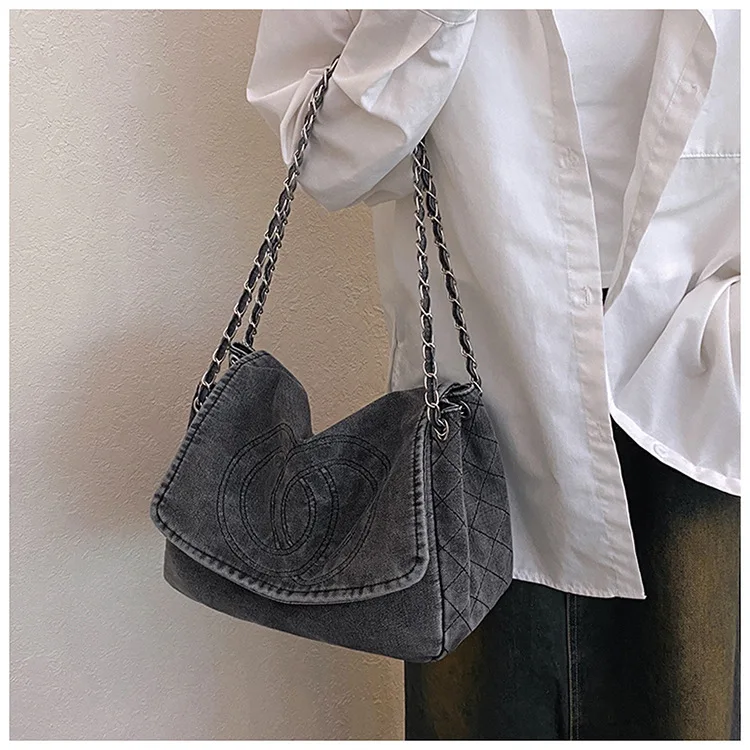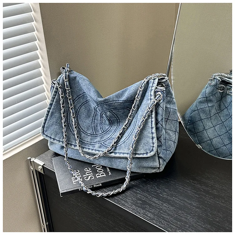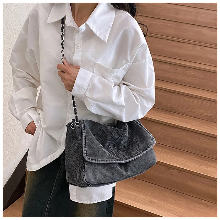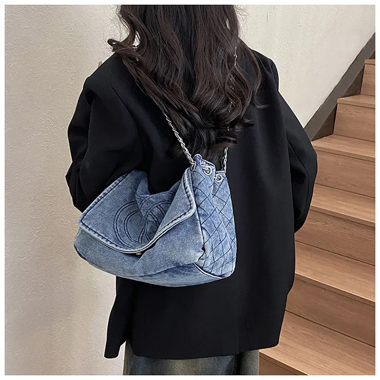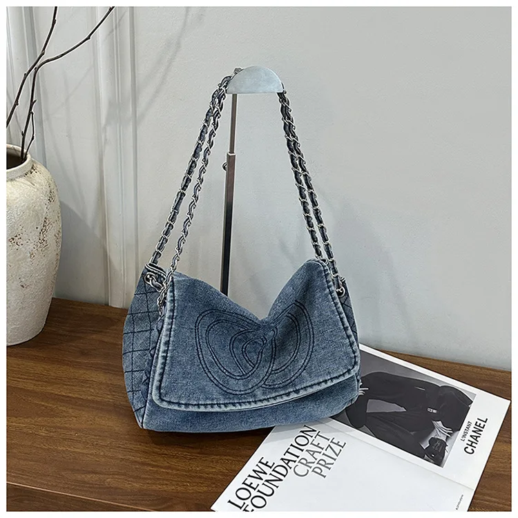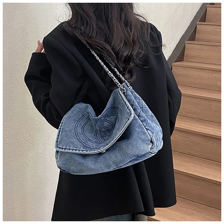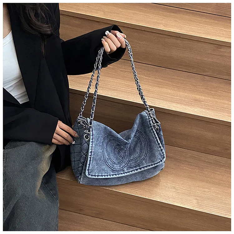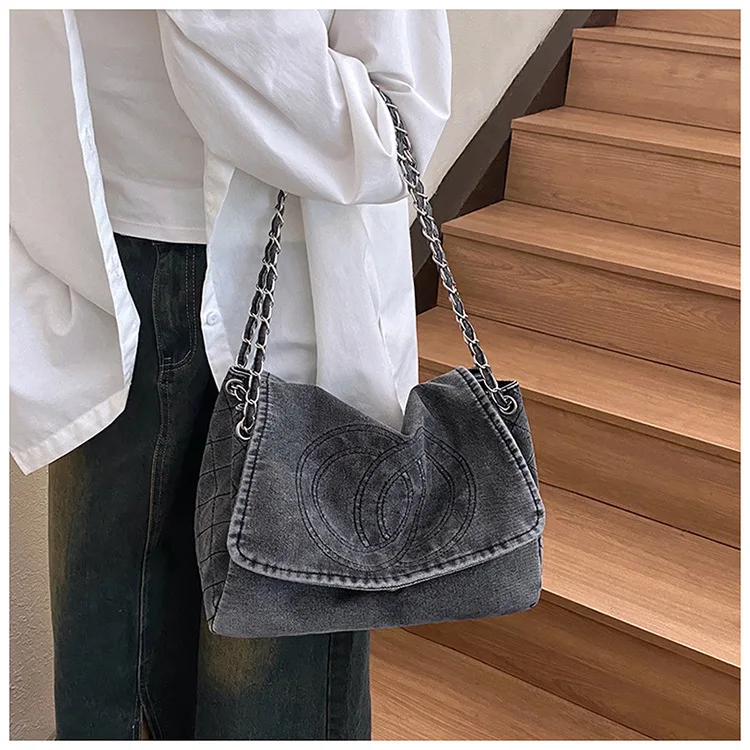 Borsa a tracolla in denim retrò da donna: borsa a tracolla spaziosa e alla moda, borsa vintage elegante, borsa versatile e casual chic