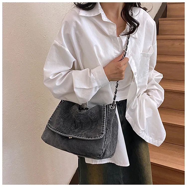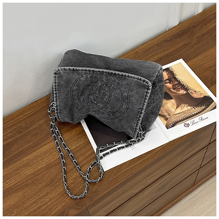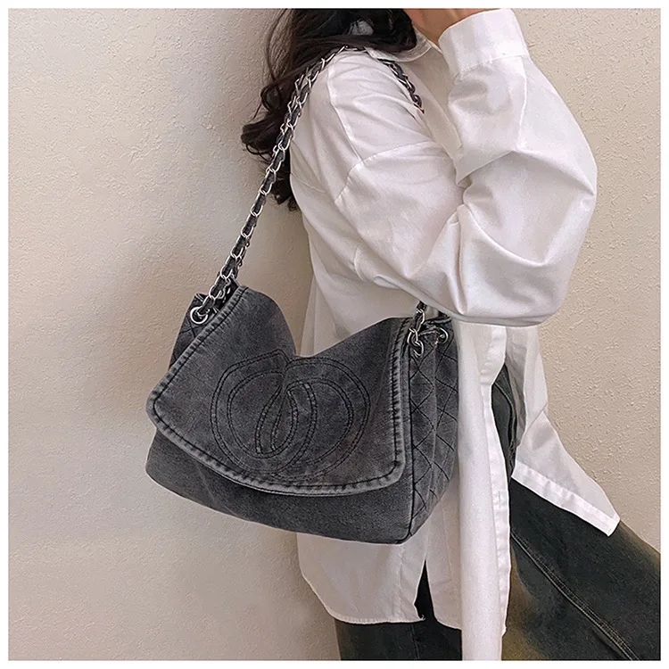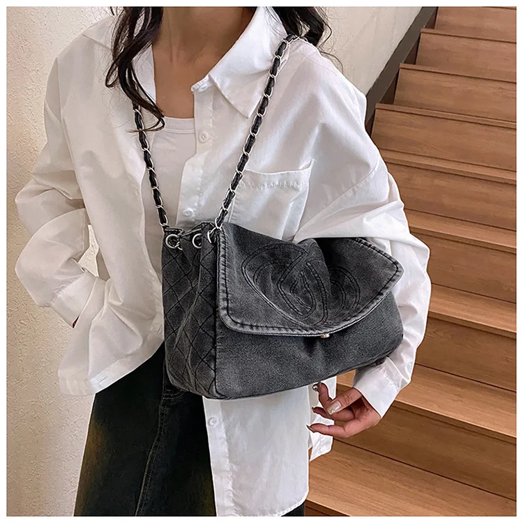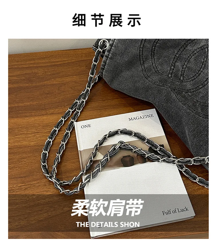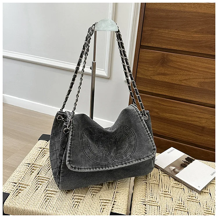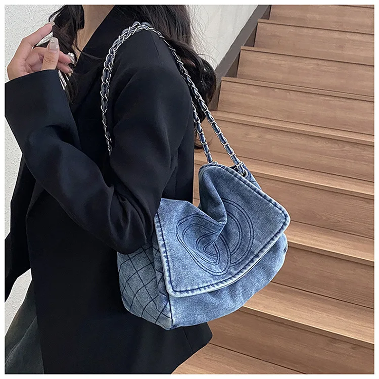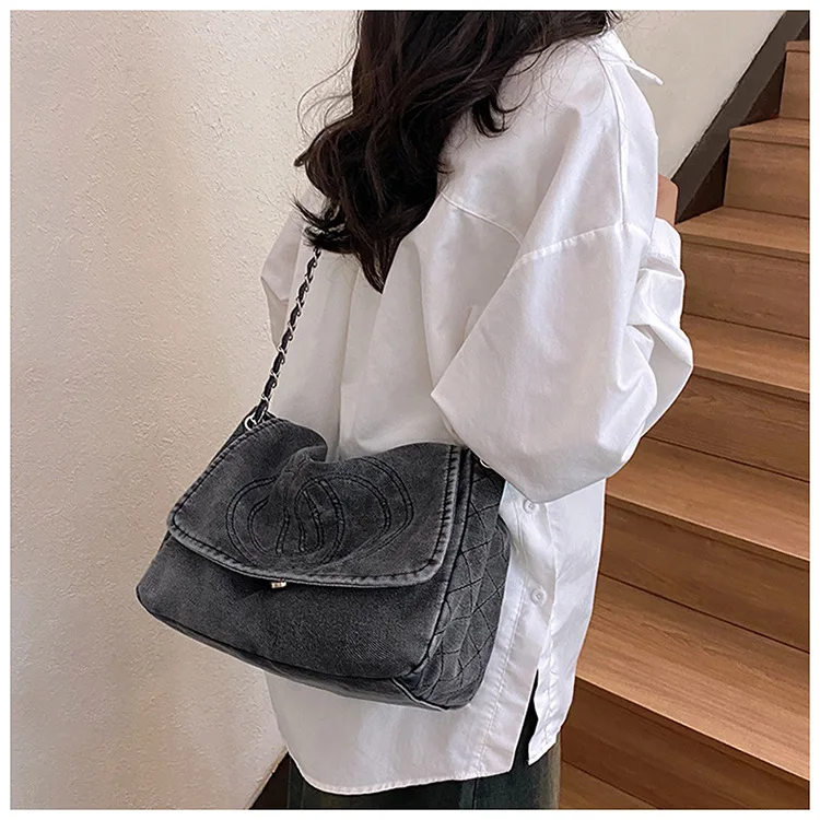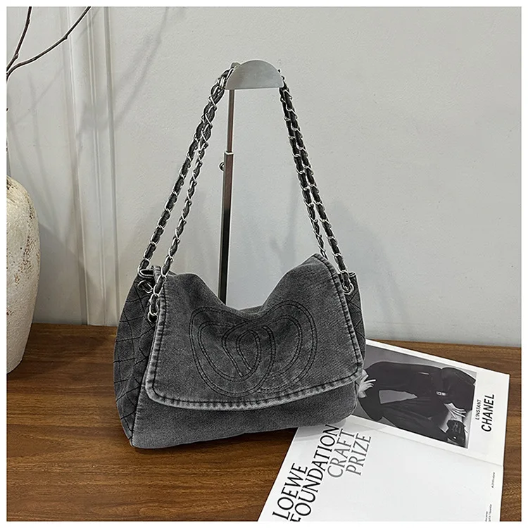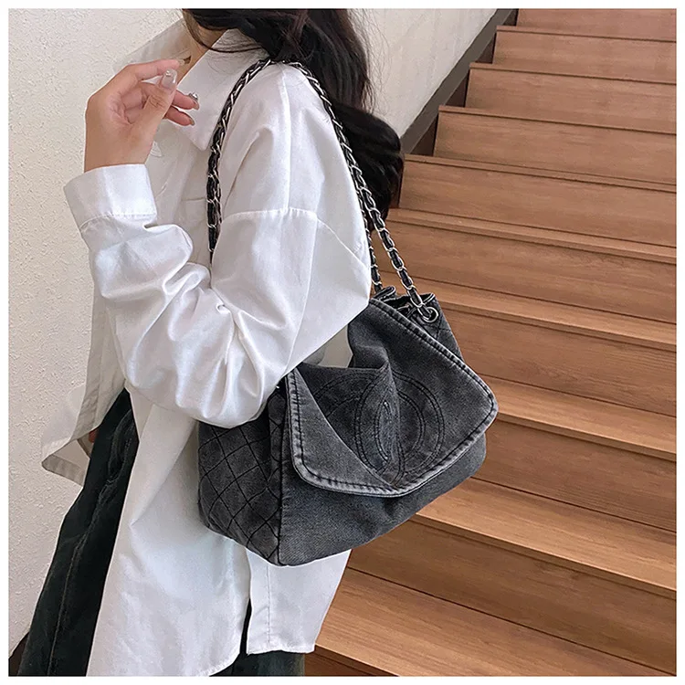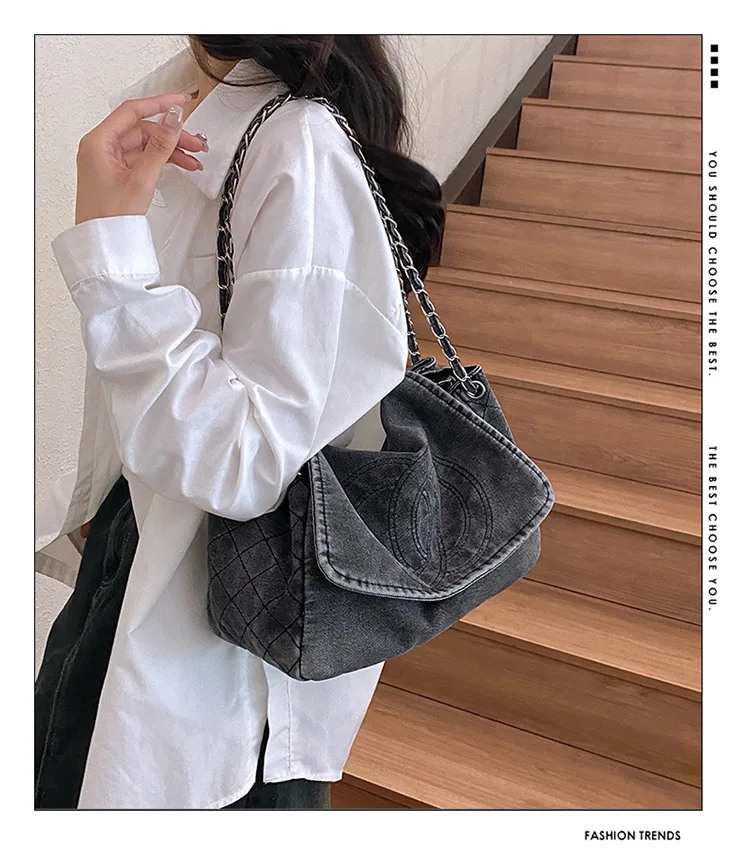 Borsa a tracolla in denim retrò da donna: borsa a tracolla spaziosa e alla moda, borsa vintage elegante, borsa versatile e casual chic