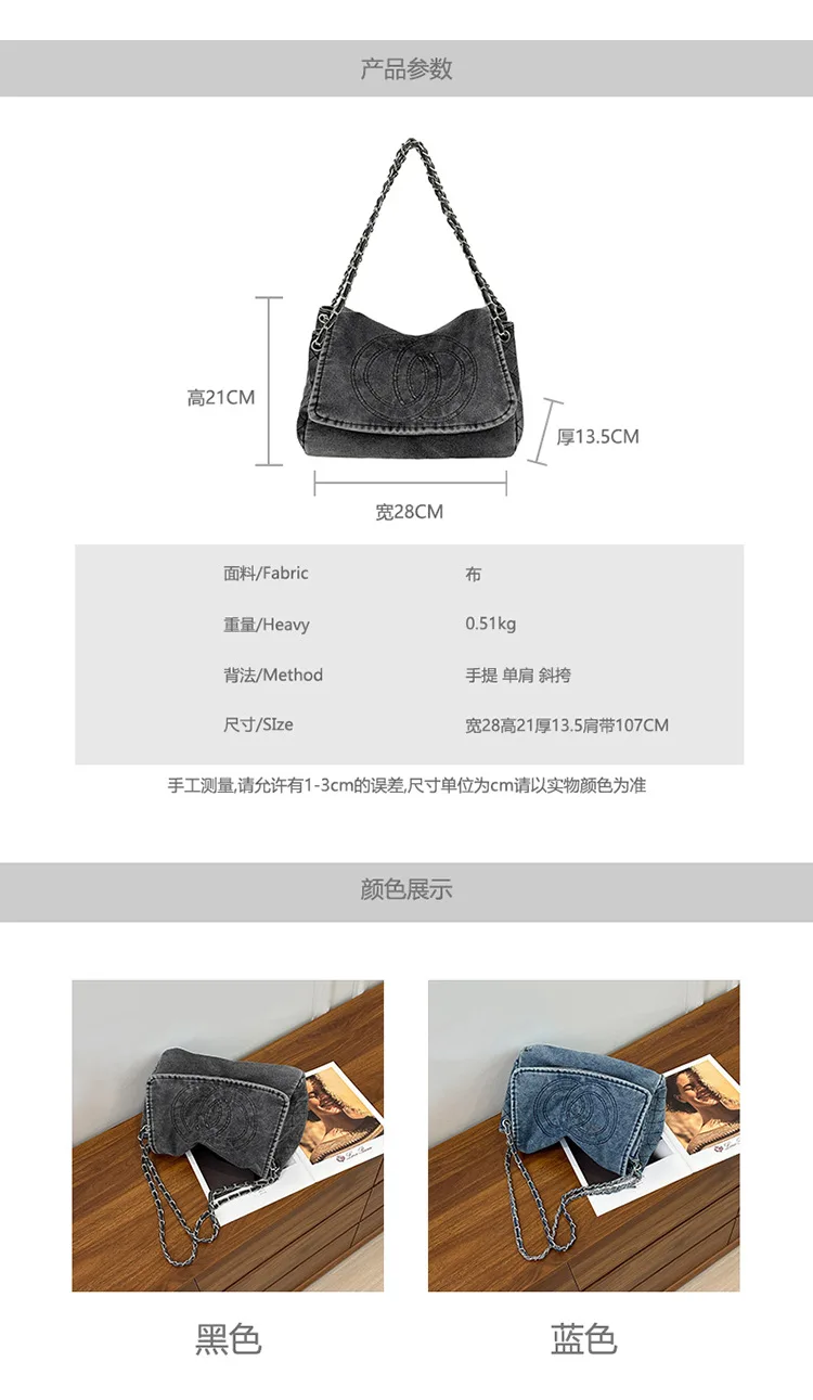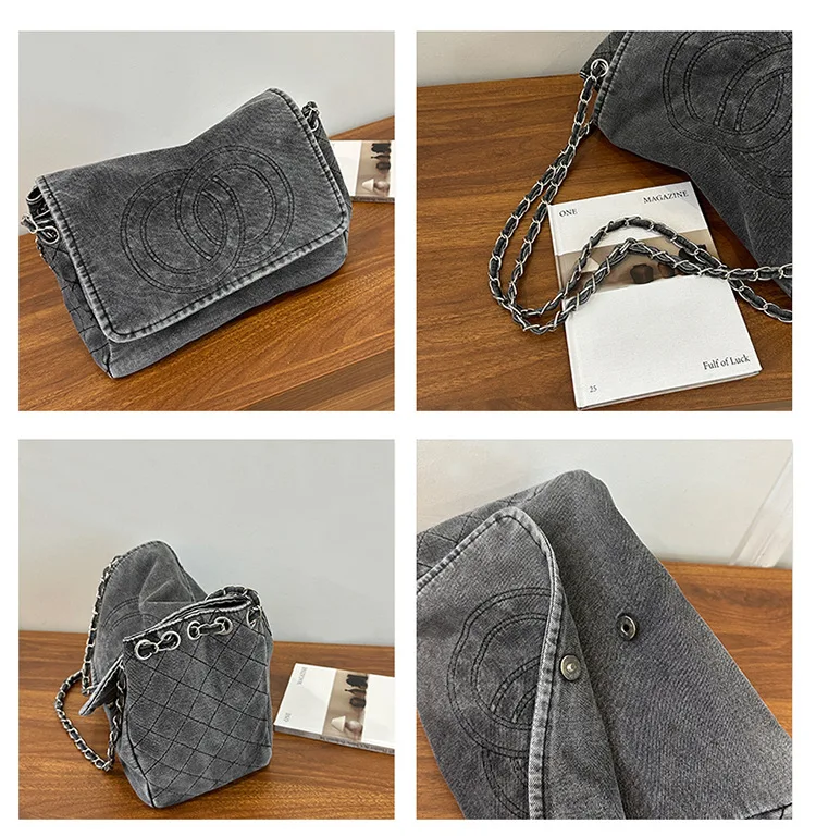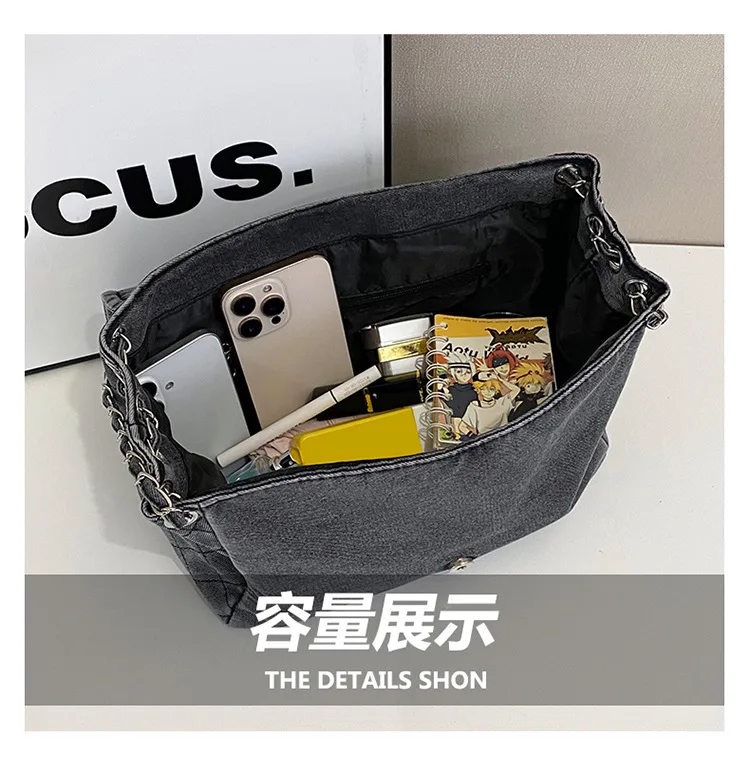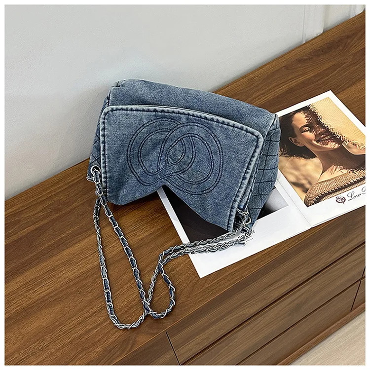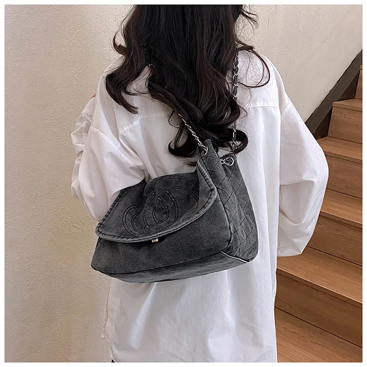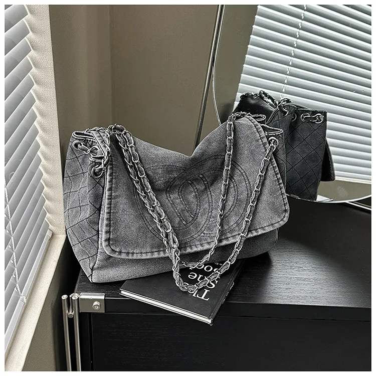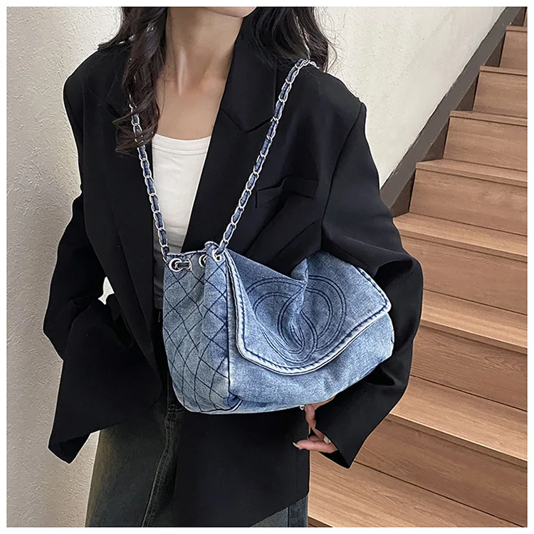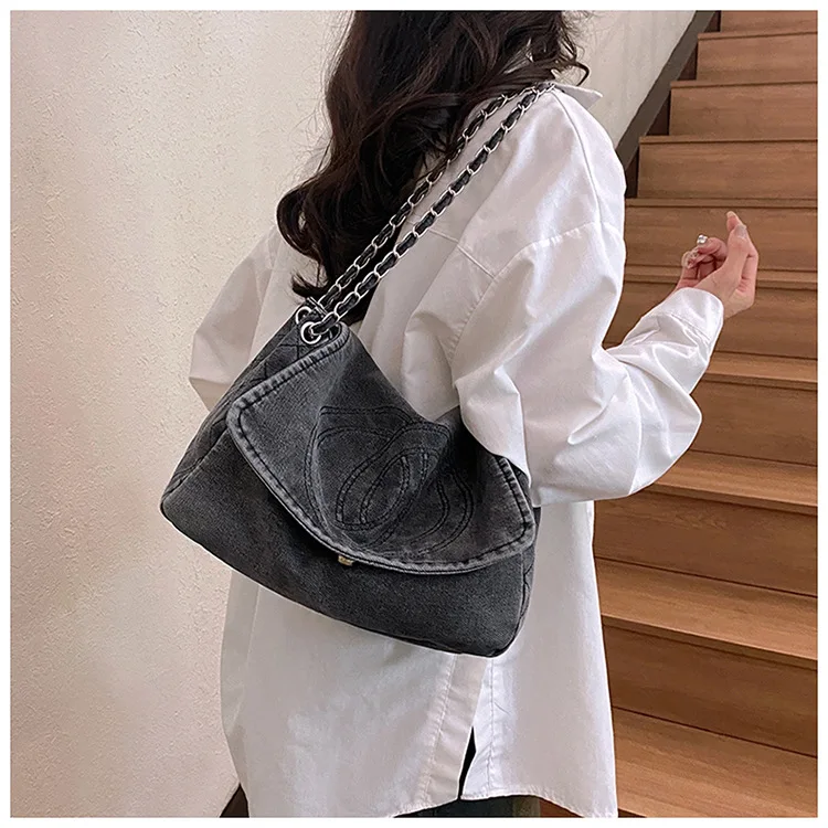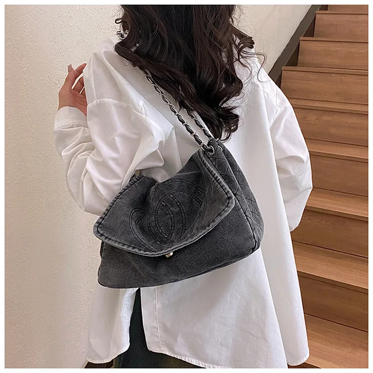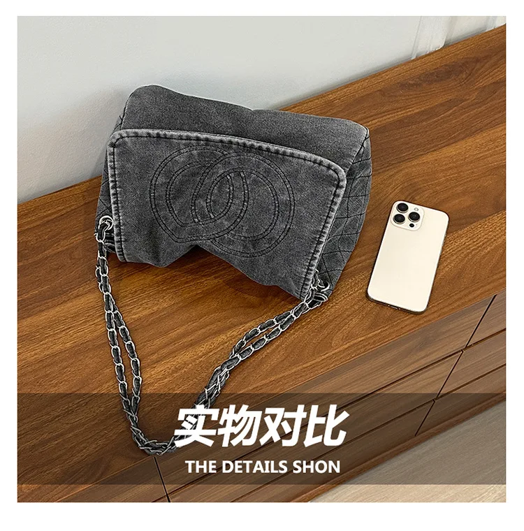 Borsa a tracolla in denim retrò da donna: borsa a tracolla spaziosa e alla moda, borsa vintage elegante, borsa versatile e casual chic