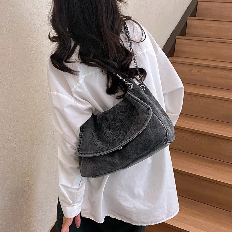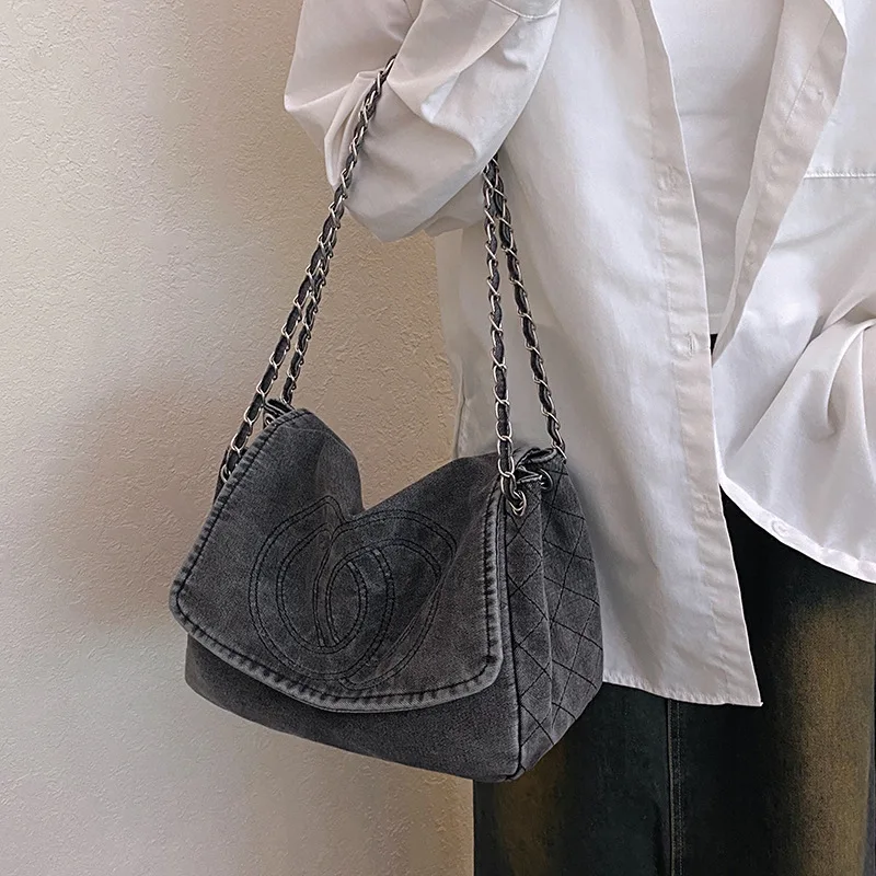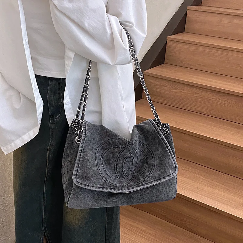Borsa a tracolla in denim retrò da donna: borsa a tracolla spaziosa e alla moda, borsa vintage elegante, borsa versatile e casual chic