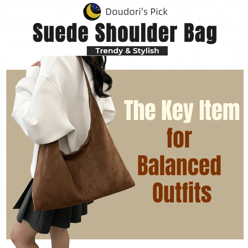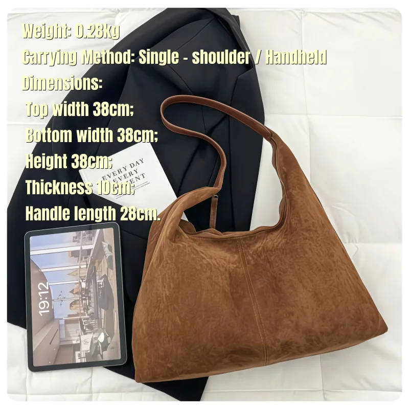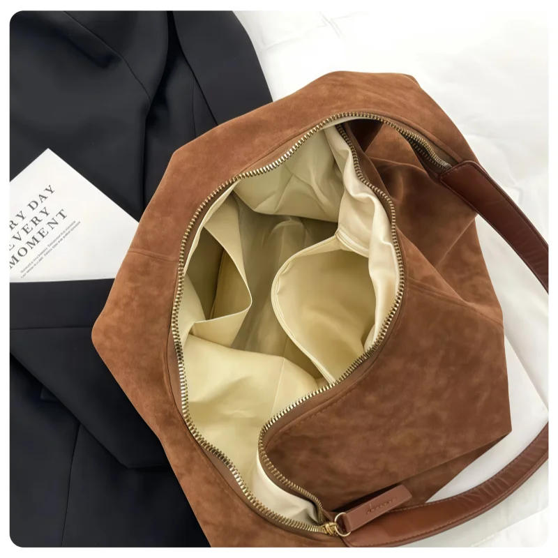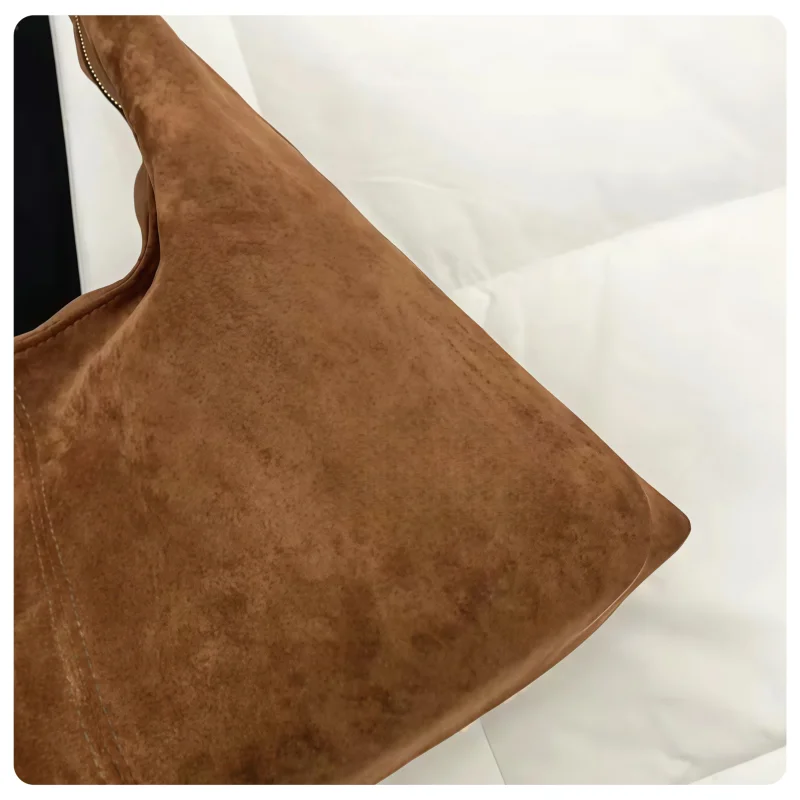 Borsa a tracolla in finta pelle scamosciata di grande capacità casual di fascia alta marrone autunno e inverno stile retrò