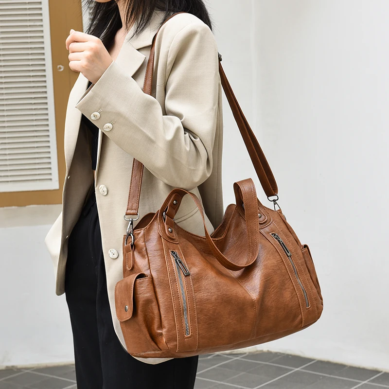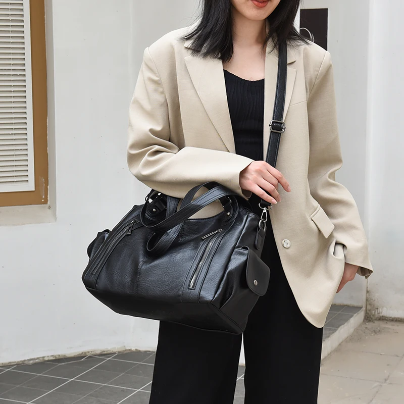 Borsa a tracolla in PU con temperamento alla moda, design con apertura a cerniera, borsa per pendolari quotidiana