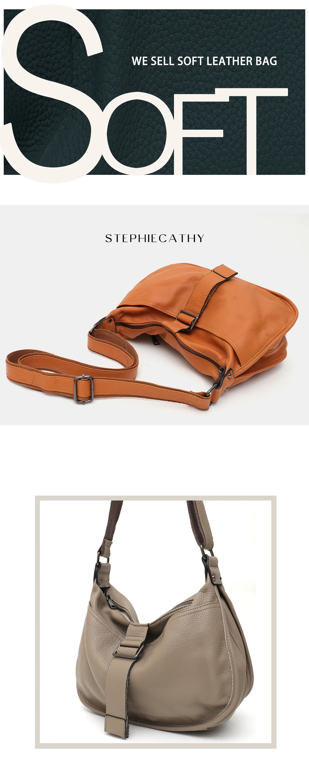 Borsa a tracolla in vera pelle stile design da donna multi tasche borsa a tracolla casual quotidiana slouchy preppy chic