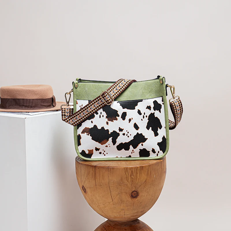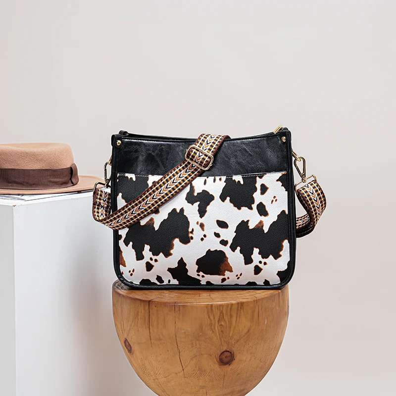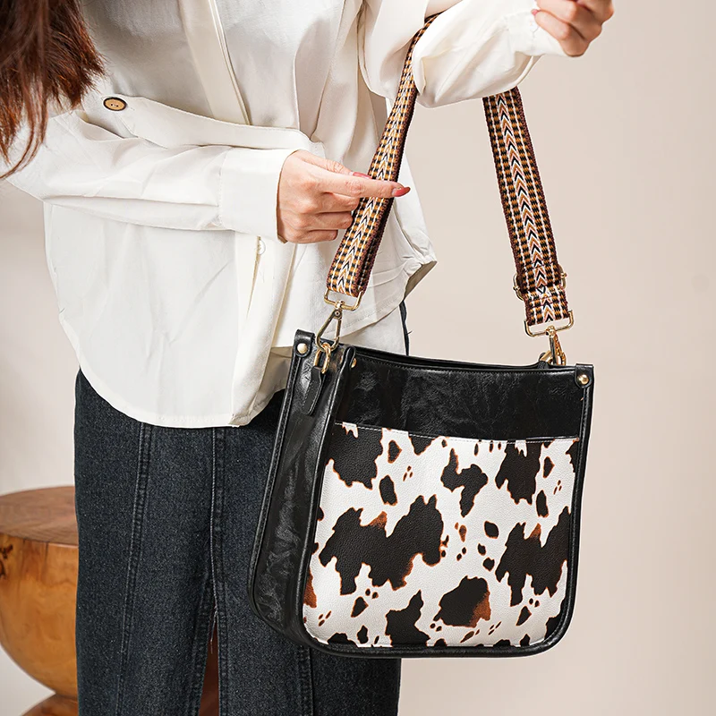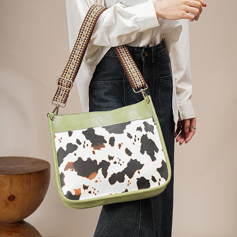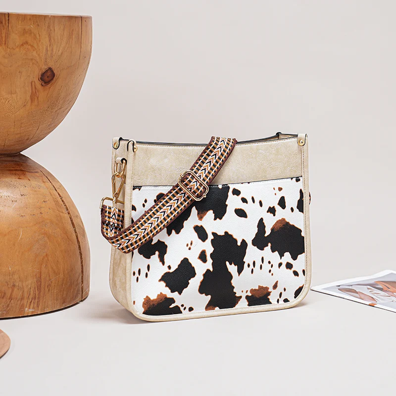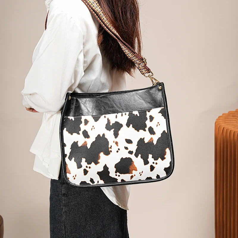 Borsa a tracolla modello mucca 2 pezzi, borsa a tracolla Casual in ecopelle alla moda con tracolla Vintage, borsa e borsa versatili da donna