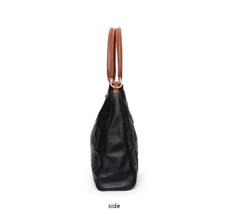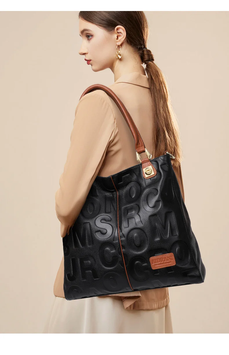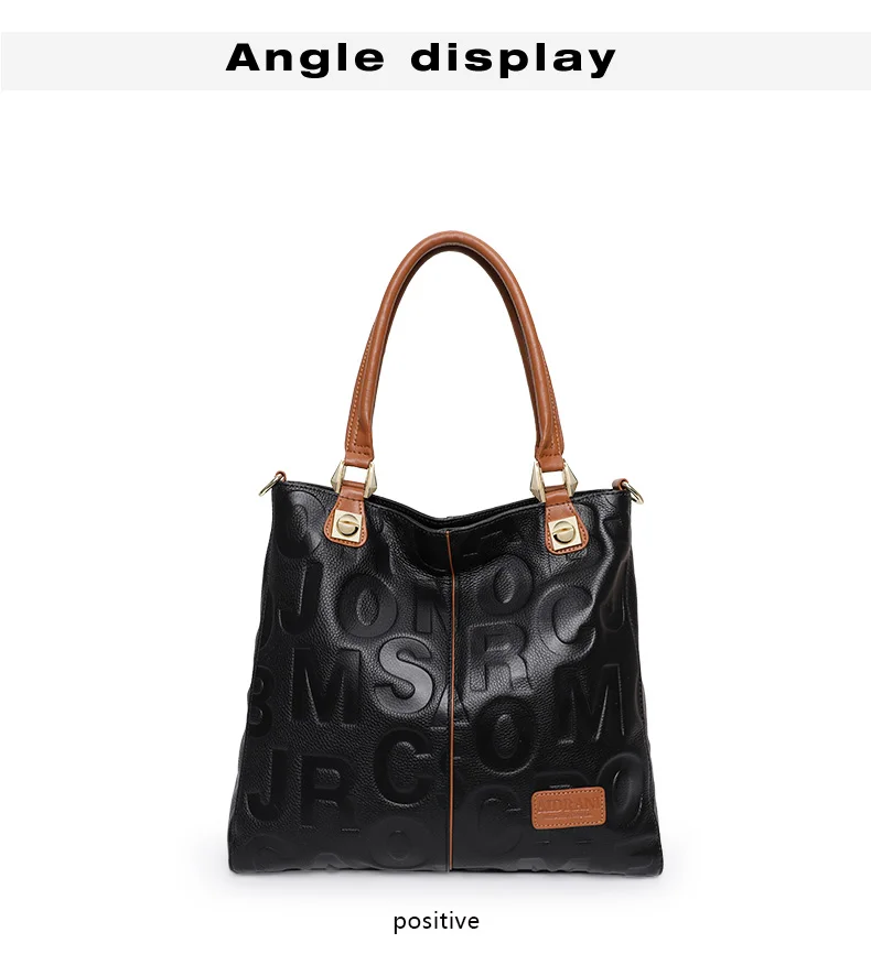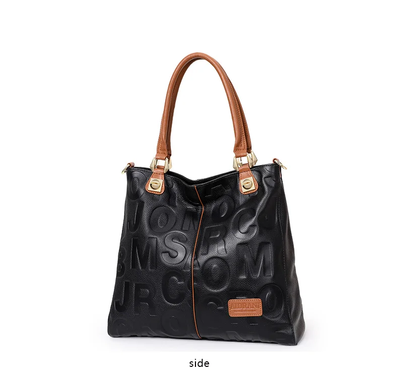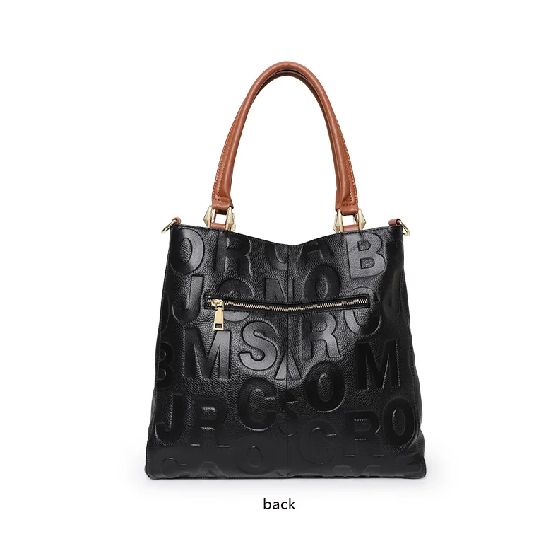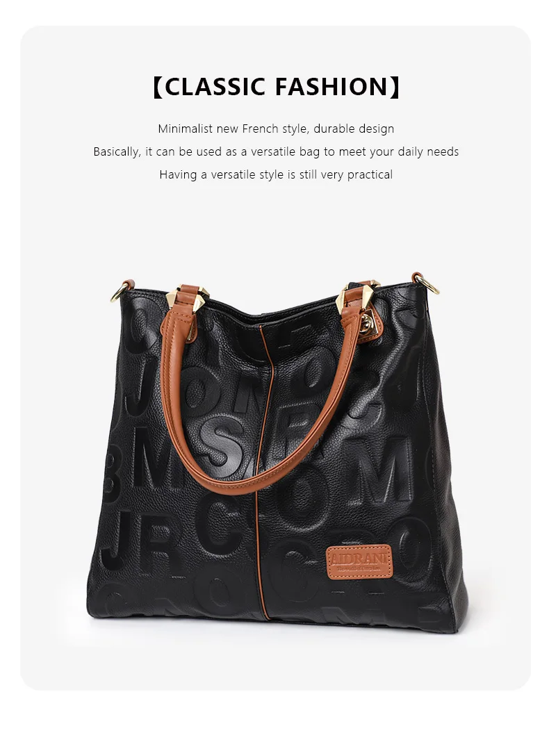 Borsa alla moda Aidrani, borsa da donna stampata con lettere di grande capacità, realizzata in pelle bovina, nera 1Borsa alla moda Aidrani, borsa da donna stampata con lettere di grande capacità, realizzata in pelle bovina, nera
