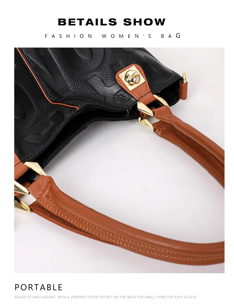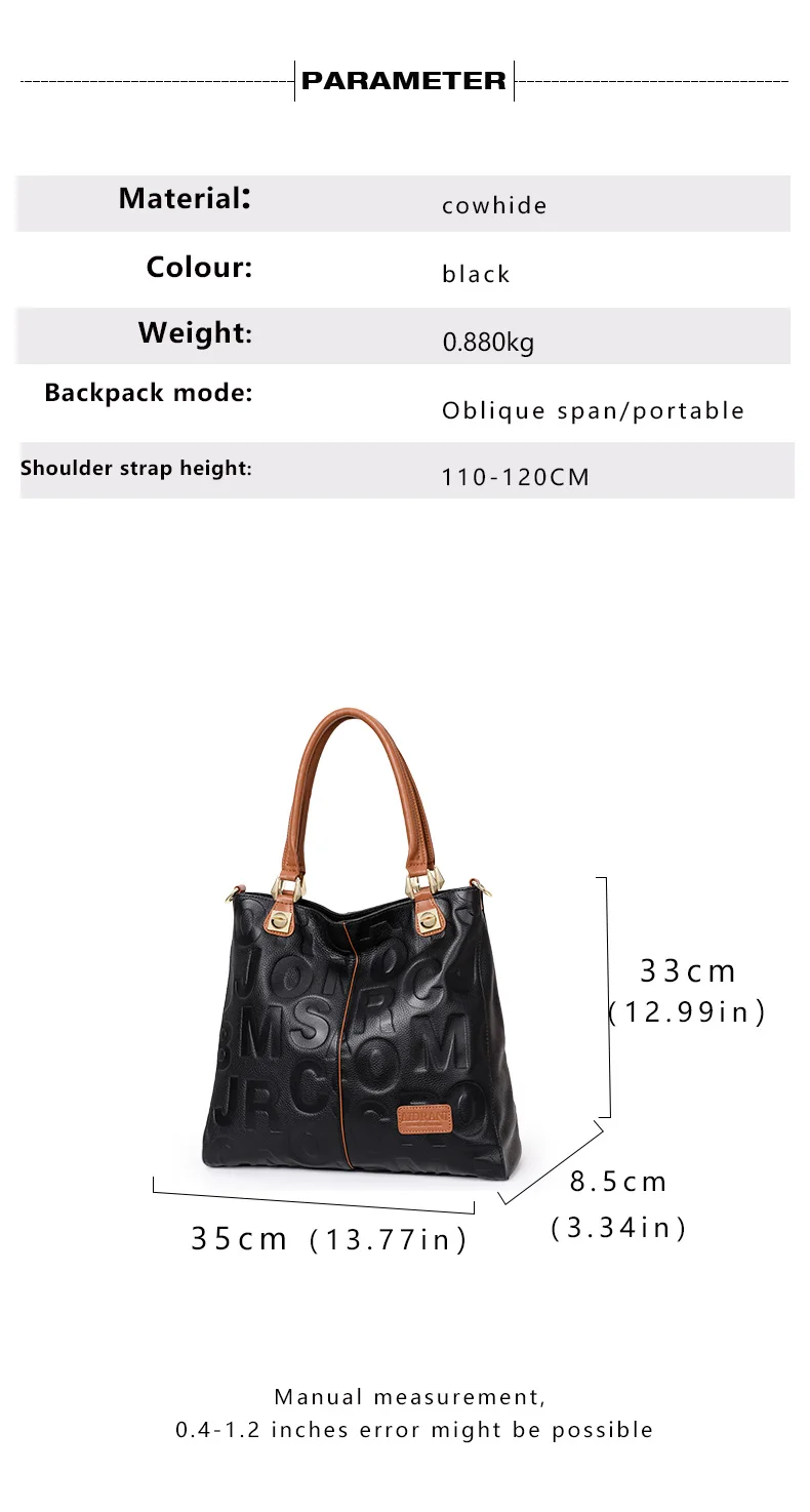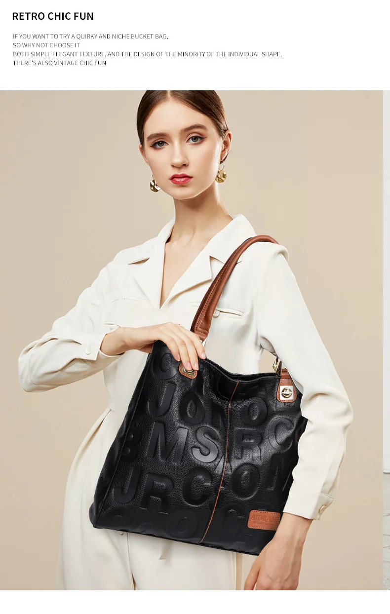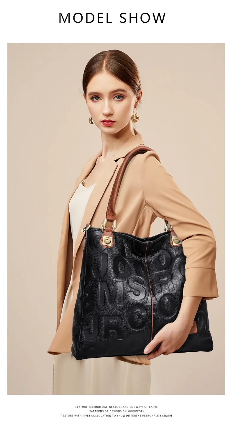 Borsa alla moda Aidrani, borsa da donna stampata con lettere di grande capacità, realizzata in pelle bovina, nera 1Borsa alla moda Aidrani, borsa da donna stampata con lettere di grande capacità, realizzata in pelle bovina, nera