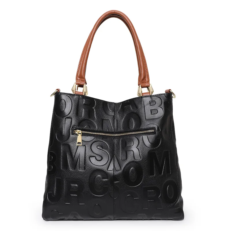 Borsa alla moda Aidrani, borsa da donna stampata con lettere di grande capacità, realizzata in pelle bovina, nera 1Borsa alla moda Aidrani, borsa da donna stampata con lettere di grande capacità, realizzata in pelle bovina, nera