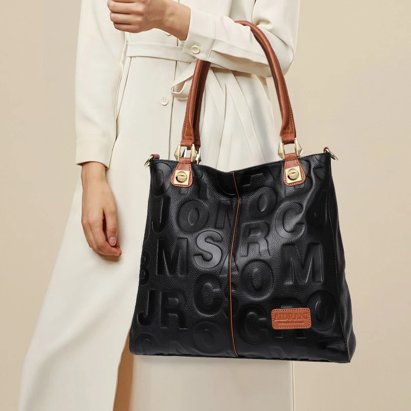 Borsa alla moda Aidrani, borsa da donna stampata con lettere di grande capacità, realizzata in pelle bovina, nera