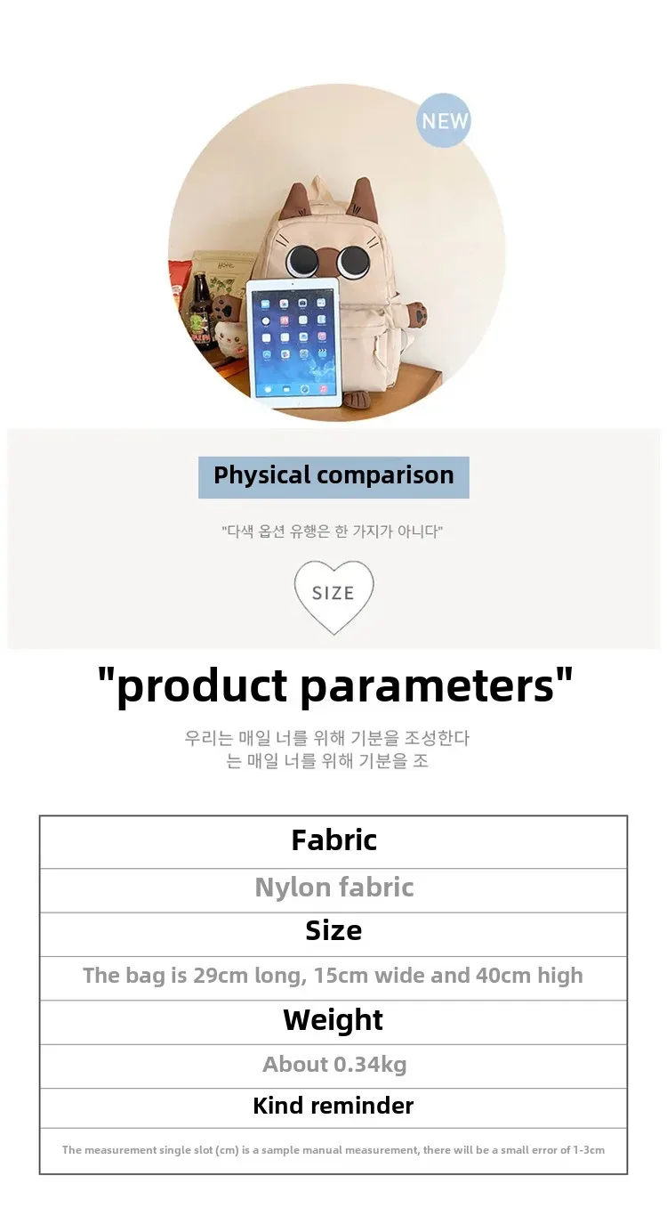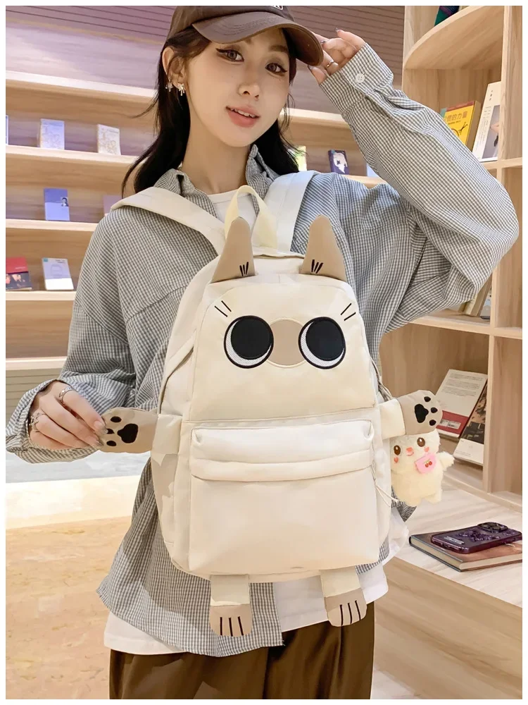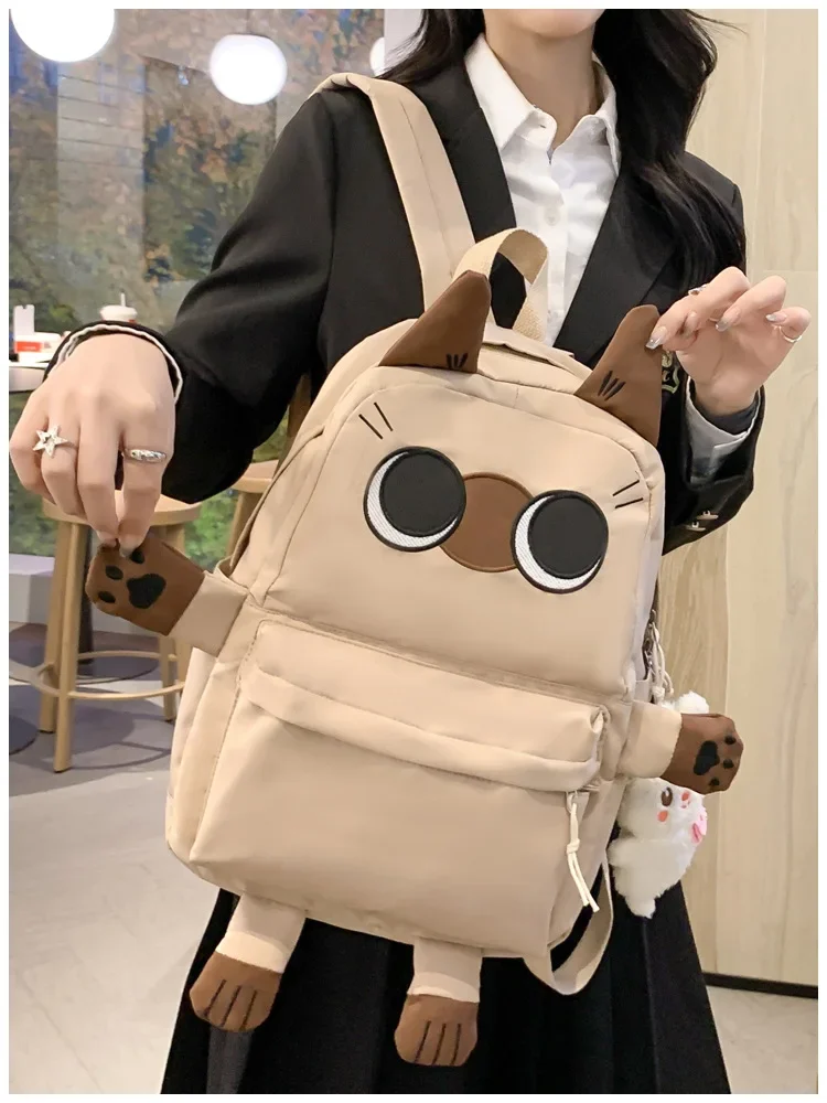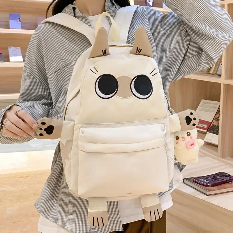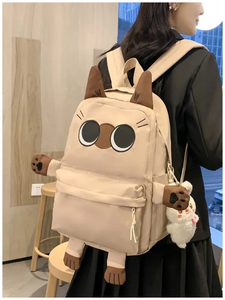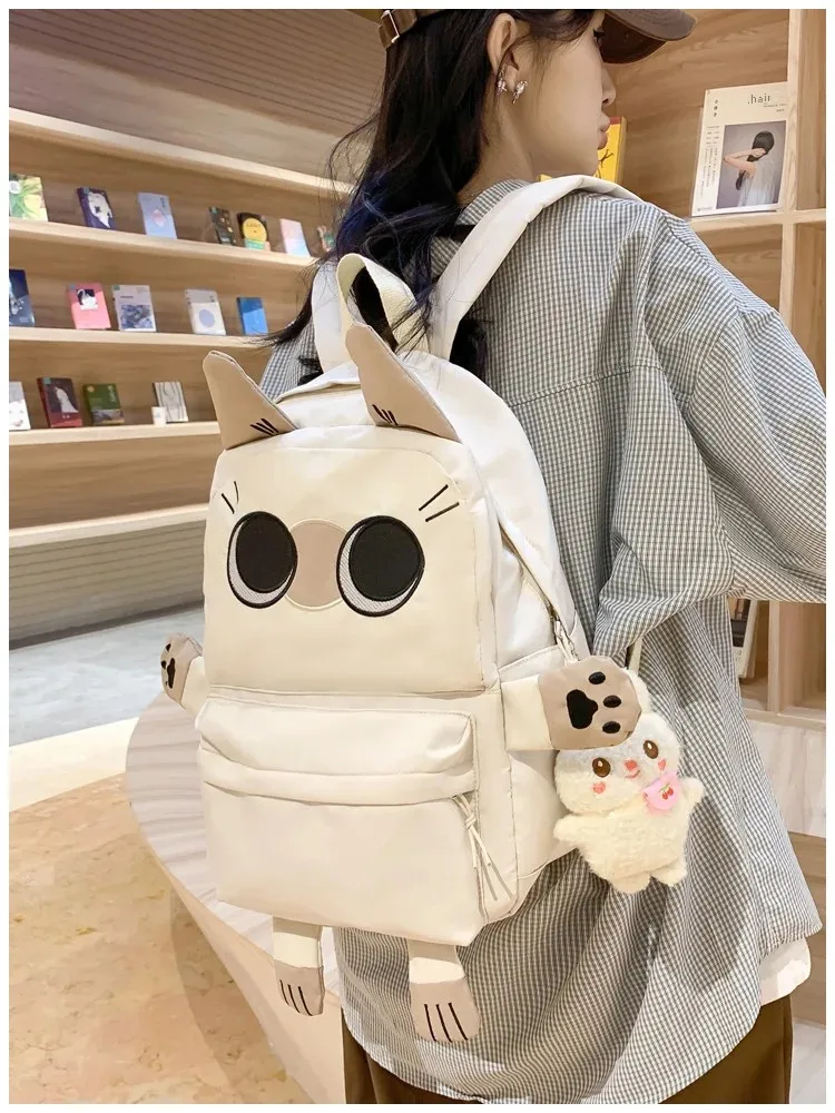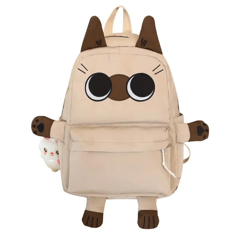 • Design carino:Caratterizzato da un affascinante design di gatto siamese a forma di cartone animato giapponese, questo zaino aggiunge un tocco di dolcezza al tuo look scolastico quotidiano.