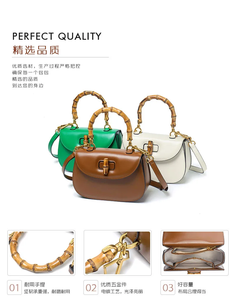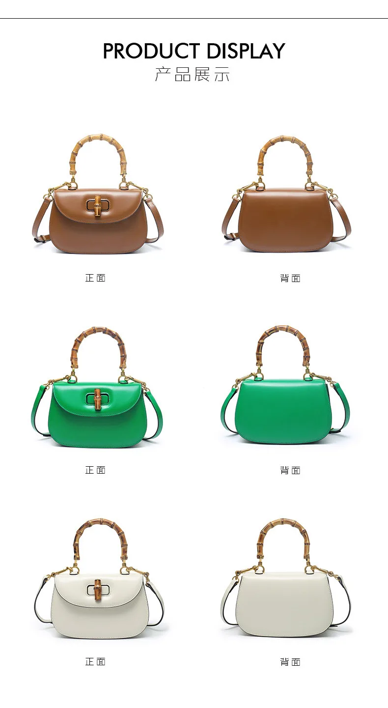 Borsa da polso con giunto in bambù in vera pelle 2025 nuovo design di nicchia borsa a tracolla monospalla di fascia alta in pelle di vacchetta borsa da donna alla moda