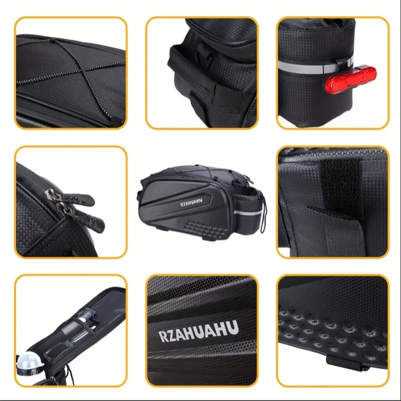 Borsa per cammello da bicicletta borsa per sedile posteriore pieghevole elettrica di grande capacità per parti in bicicletta per Mountain bike e accessori per borse cammelloDescrizione:La borsa posteriore per bicicletta impermeabile viene fornita con una grande capacità di circa 10 litri, materiali impermeabili, striscia riflettente ad alta luminosità e tracolla rimovibile per soddisfare le esigenze quotidiane di uscire.Specifica:Nome: borsa posteriore per biciclettaMateriale: corpo su entrambi i lati: PU + EVA;Dimensioni: circa 38.5*19*16cm/15.16*7.68 * 6.30inCapacità: circa 10LPeso: circa 700g (più tracolla)Applicabile: bici/auto elettrica/moto/guida/auto per conto di altriCaratteristiche: design impermeabile/portatile/cinturino con gancio e anello/capacità di aumentoLista di imballaggio:Borsa posteriore per bicicletta * 1Nota:A causa degli effetti di illuminazione e degli angoli di ripresa, ci sono delle differenze di colore nel prodotto, si prega di capire.A causa della misurazione manuale, c’ è una tolleranza nelle dimensioni del prodotto.