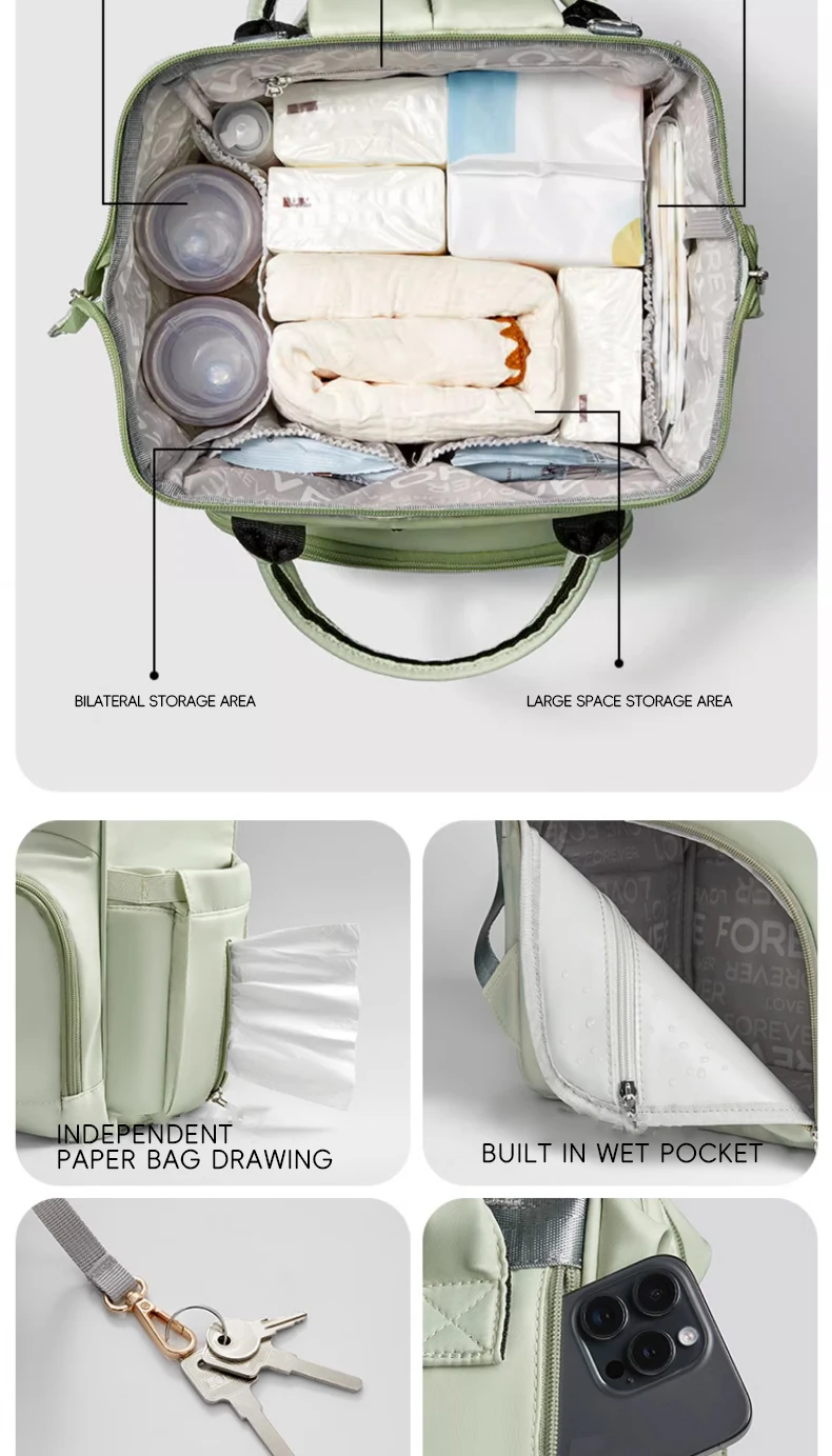 Borsa per mamma Borsa per pannolini grande multifunzionale leggera Zaino per mamma con ricarica USB Borsa per pannolini per incinta