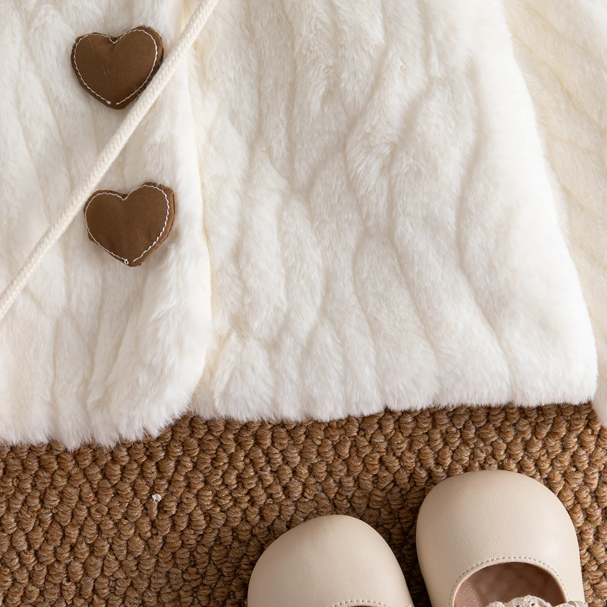 Borsa regalo invernale per cappotto in pile per bambina, dolce e cura, abbigliamento quotidiano caldo per bambini all’aperto (9 mesi a 4 anni)