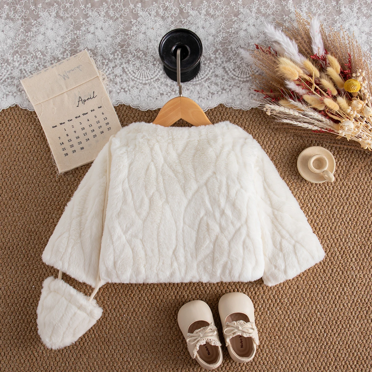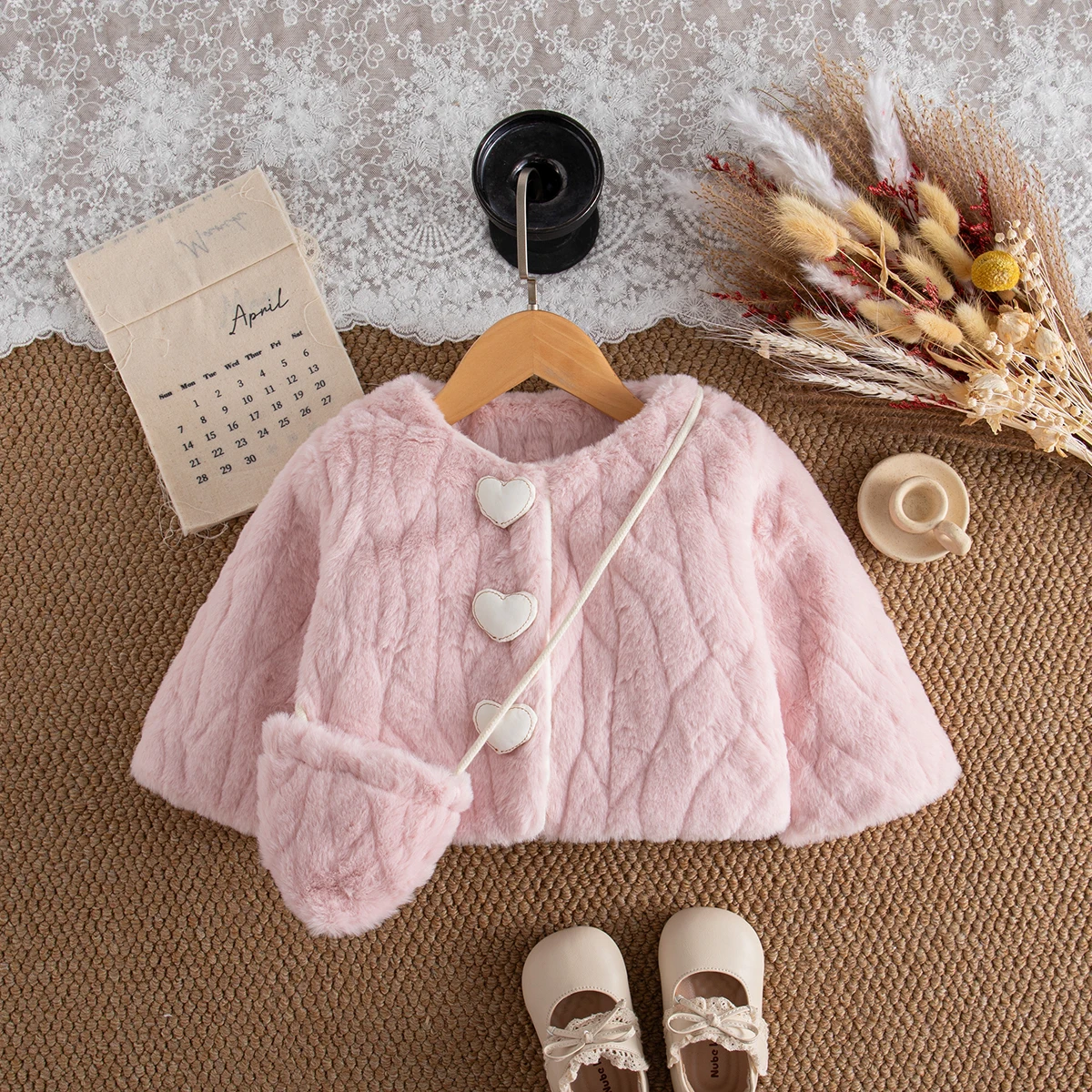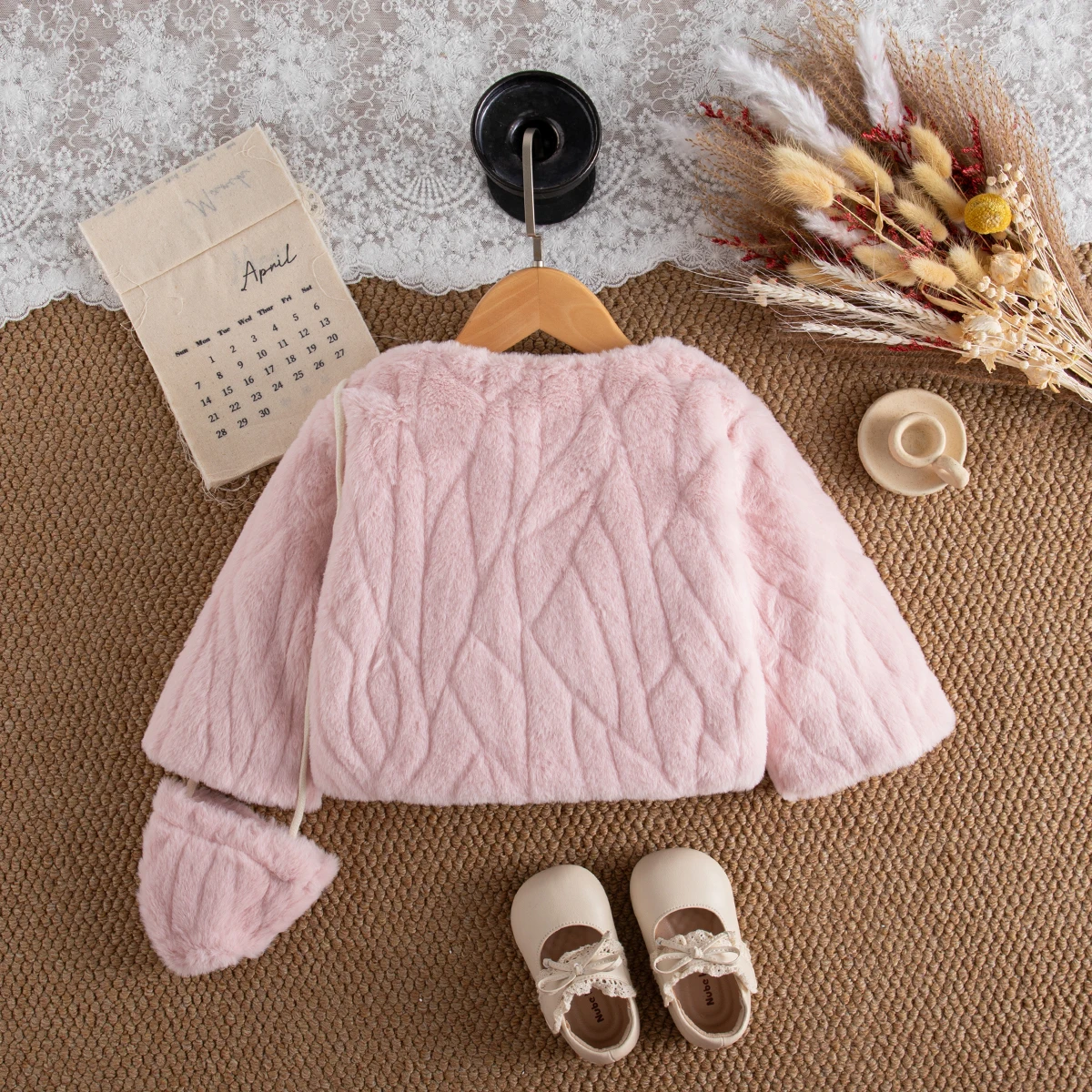 Borsa regalo invernale per cappotto in pile per bambina, dolce e cura, abbigliamento quotidiano caldo per bambini all’aperto (9 mesi a 4 anni)