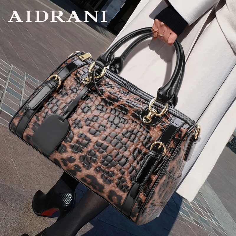 Borsa tote da donna con stampa leopardata in vera pelle di vacchetta, borsa portaoggetti trapezoidale di grande capacità, Wa