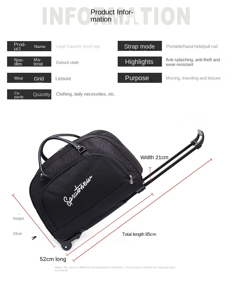 Borsa trolley con ruote Valigia da viaggio Bagagli di grande capacità Borsoni pieghevoli Cabina Donna Uomo Bagagli a mano Borse da trasporto 1Borsa trolley con ruote Valigia da viaggio Bagagli di grande capacità Borsoni pieghevoli Cabina Donna Uomo Bagagli a mano Borse da trasporto