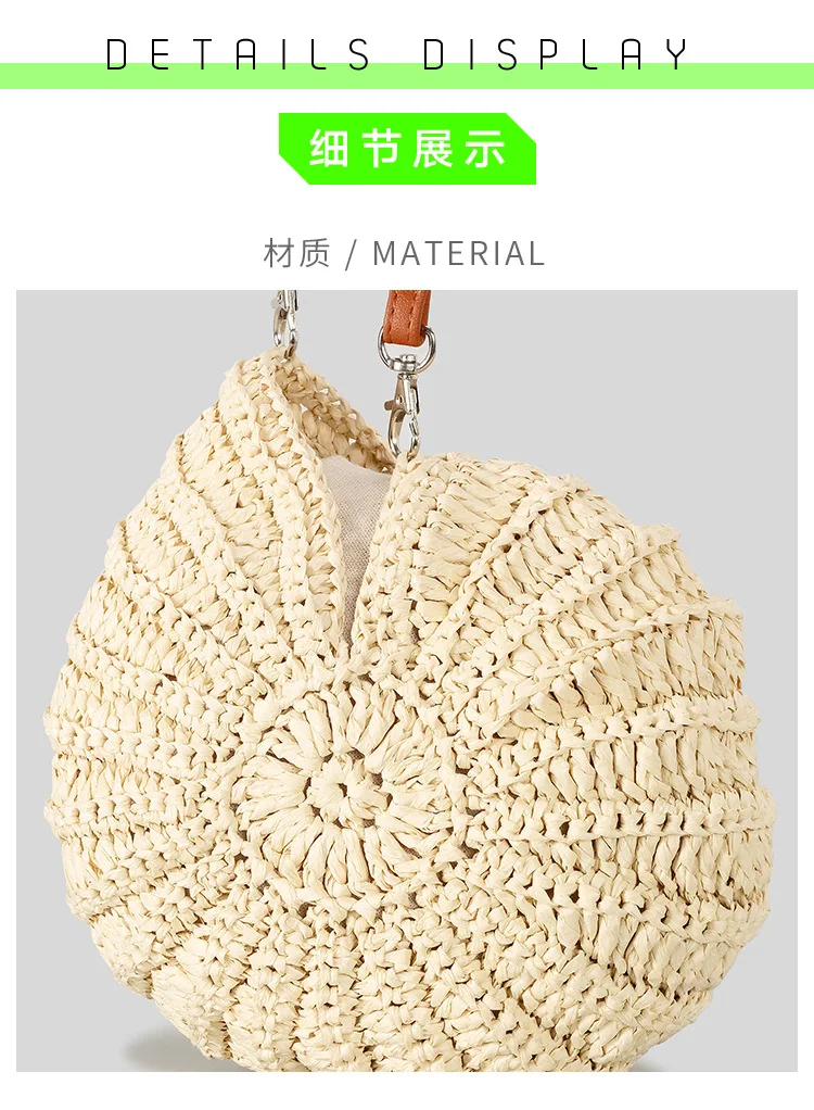 Borse a tracolla in paglia dal design creativo conchiglia Borsa a tracolla in tessuto di carta divertente Borsa da spiaggia estiva carina Piccole borse da donna 2025 1Borse a tracolla in paglia dal design creativo conchiglia Borsa a tracolla in tessuto di carta divertente Borsa da spiaggia estiva carina Piccole borse da donna 2025