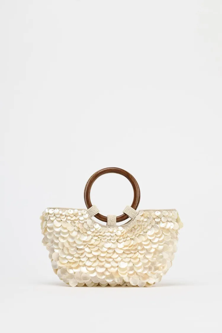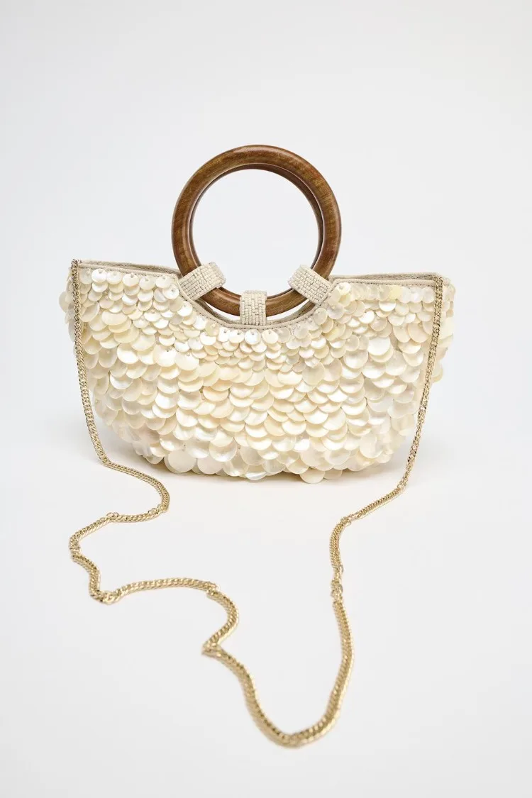 Borse con applicazioni in finto madre per donna 2025 nuove manici superiori circolari doppi a forma di mezzaluna e tracolla a catena rimovibile