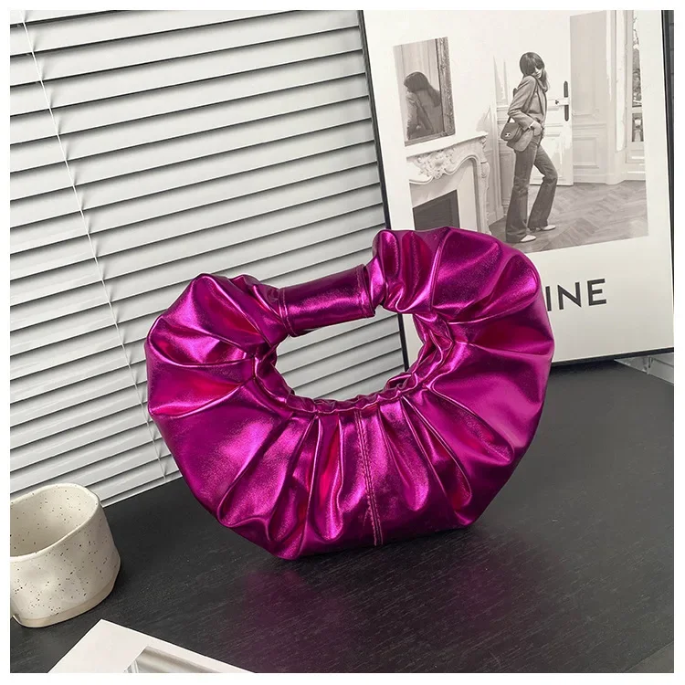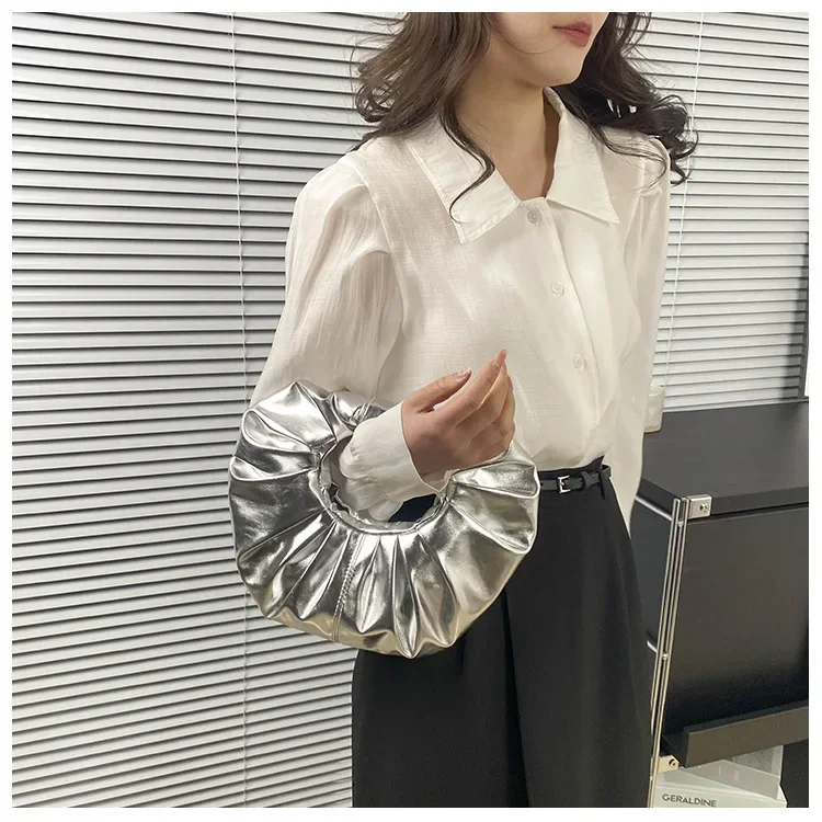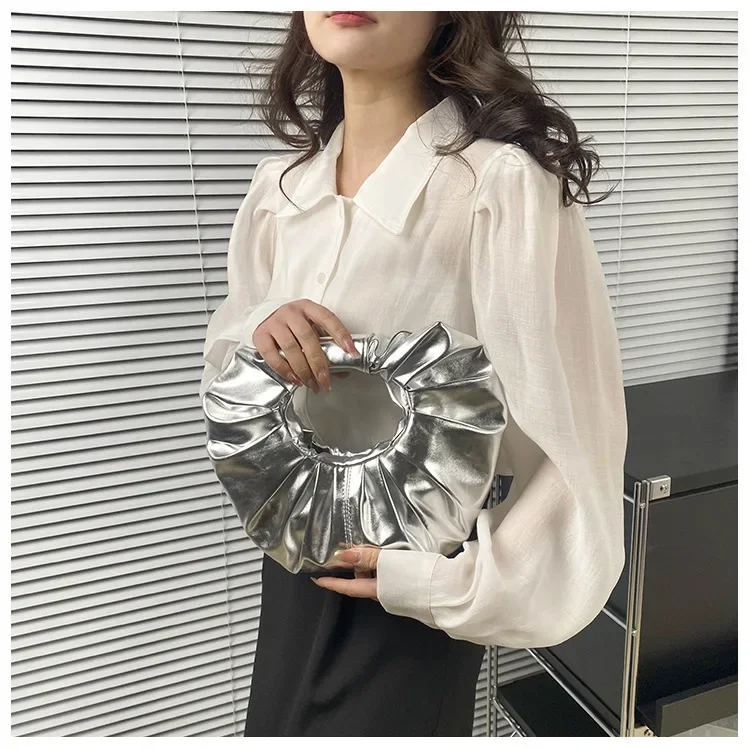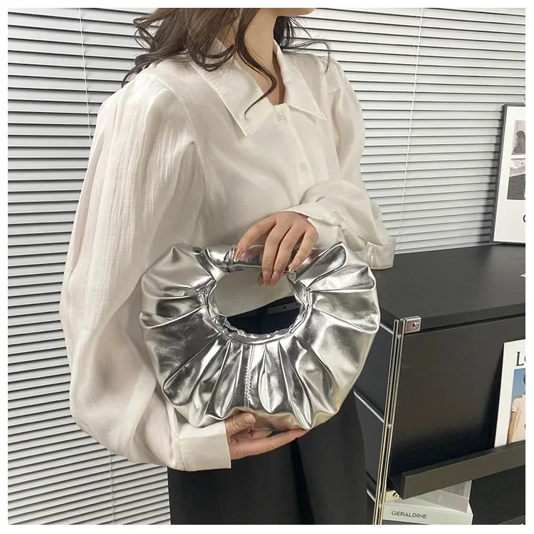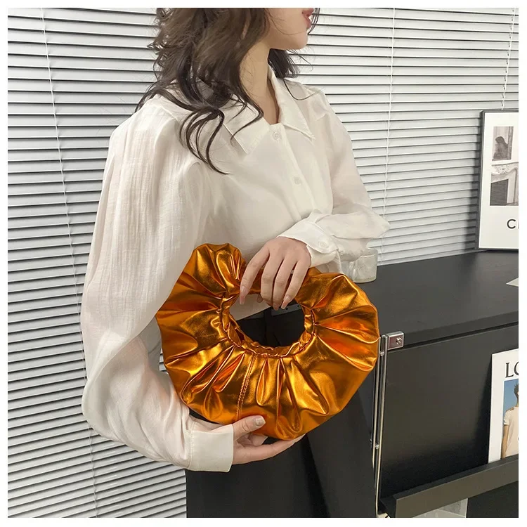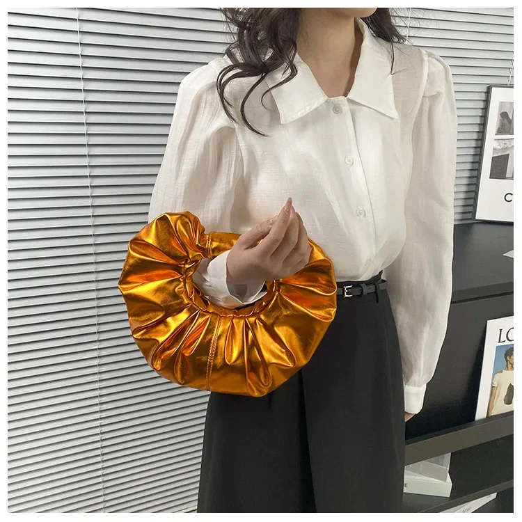 Borse da donna color caramello Pochette argento laser Borse a tracolla pieghettate metallizzate per donna 2023 Borsa di design di lusso da donna Tote