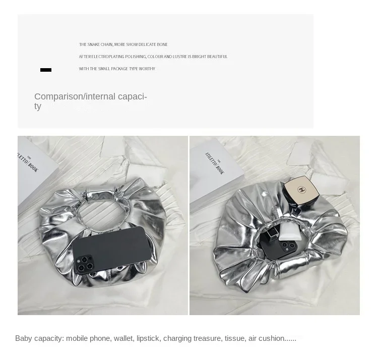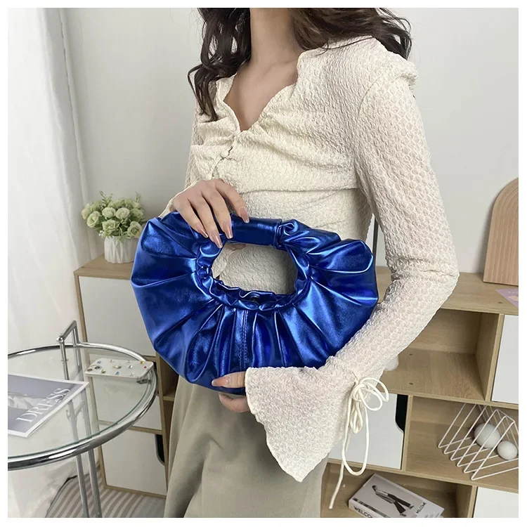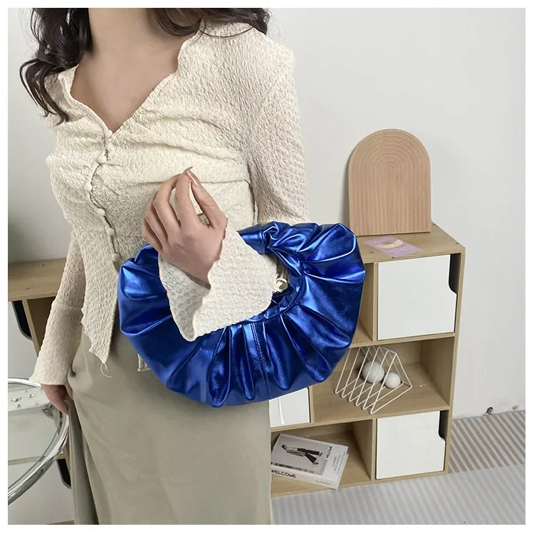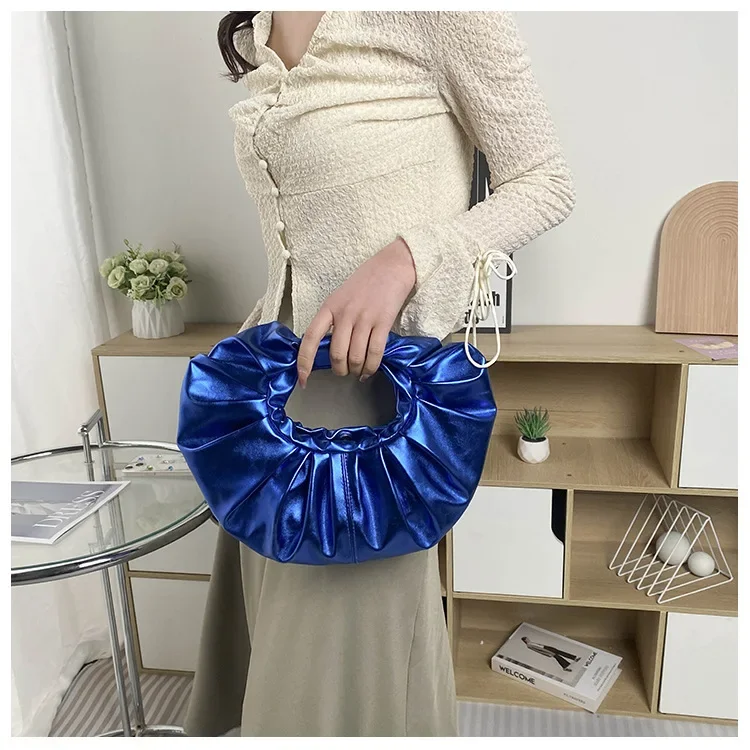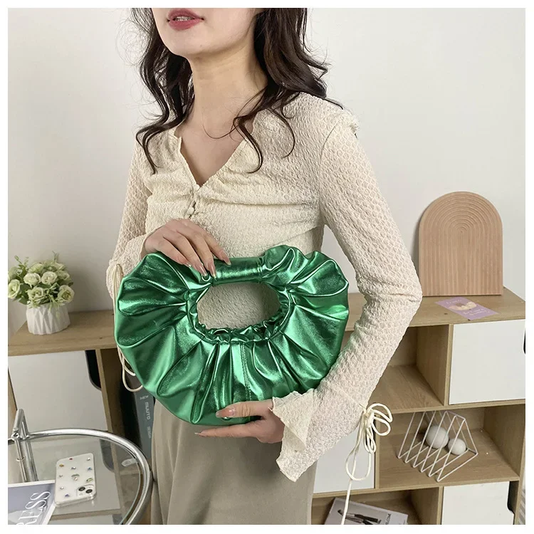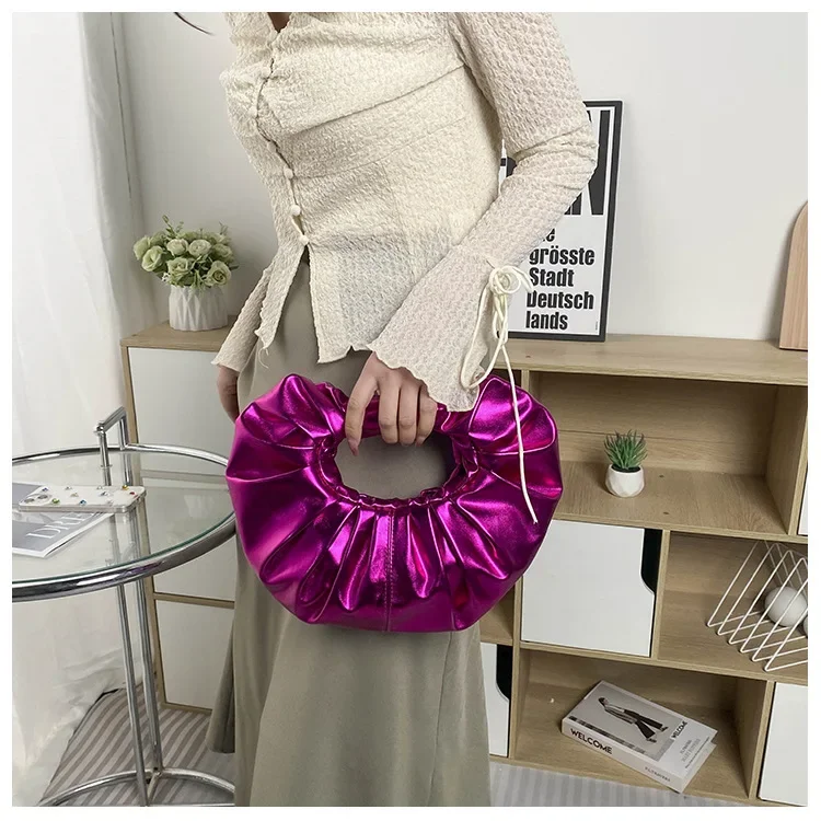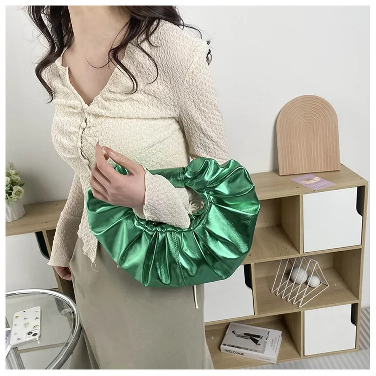 Borse da donna color caramello Pochette argento laser Borse a tracolla pieghettate metallizzate per donna 2023 Borsa di design di lusso da donna Tote