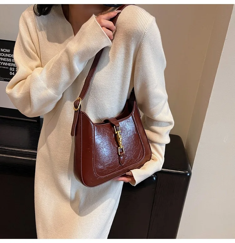 Nuove borse a tracolla sotto le ascelle da donna in morbida pelle PU retrò borse a tracolla piccole in tinta unita casual borse a tracolla moda donna