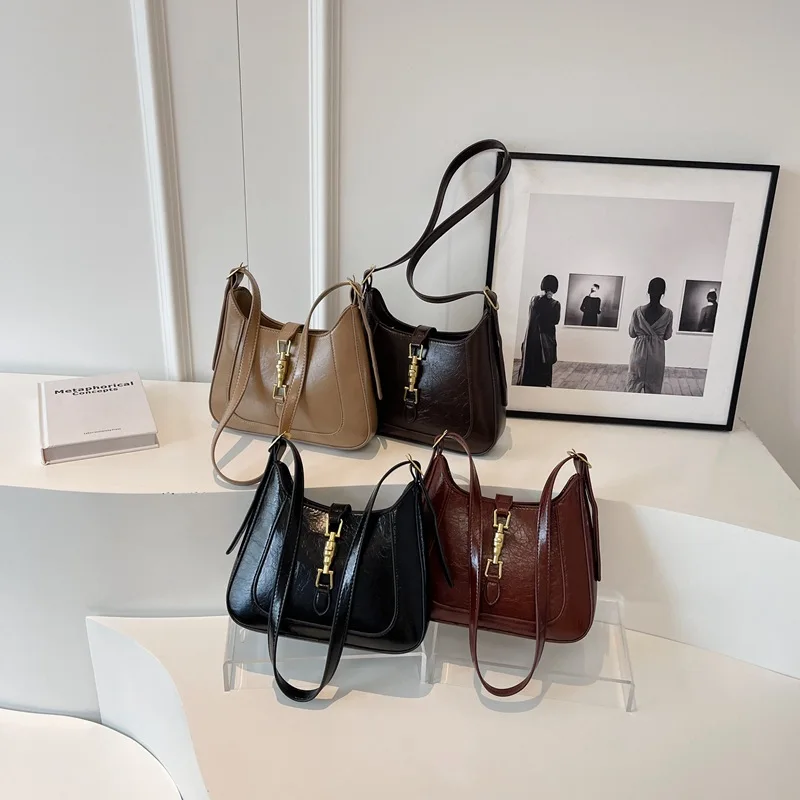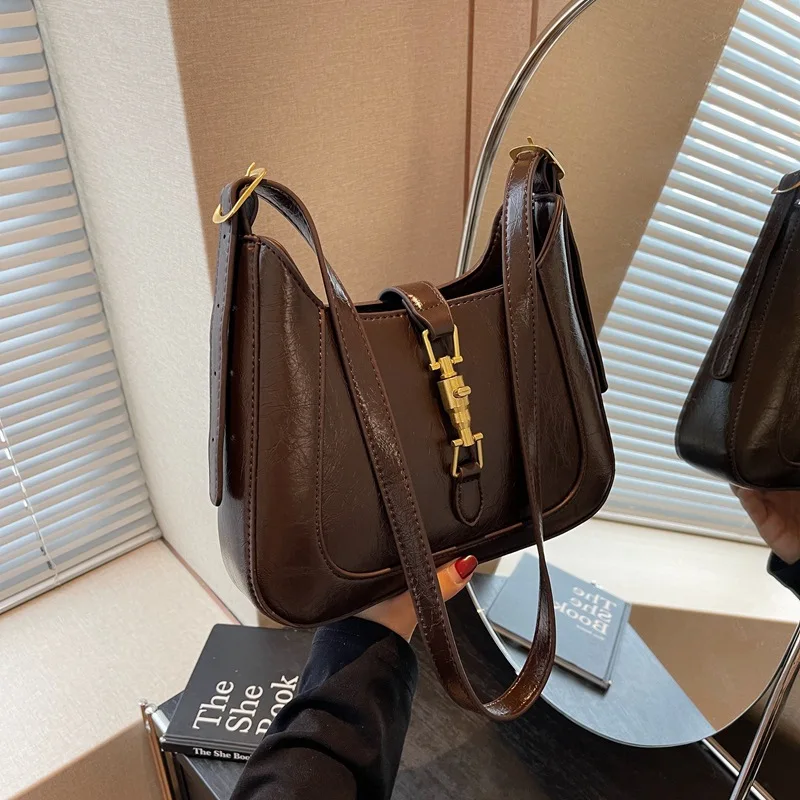 Nuove borse a tracolla sotto le ascelle da donna in morbida pelle PU retrò borse a tracolla piccole in tinta unita casual borse a tracolla moda donna