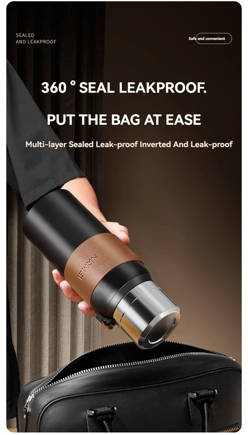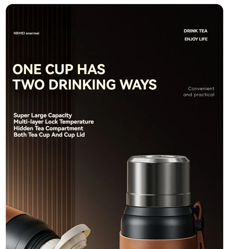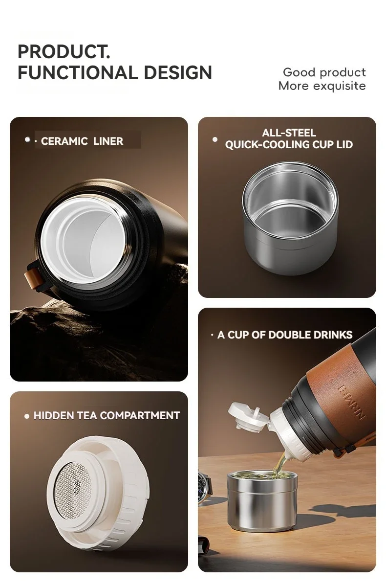 Bottiglia d’acqua da 1000 ml Tazza regalo sottovuoto in acciaio inossidabile Bicchiere termico per caffè da ufficio Boccetta isolante per prevenzione perdite