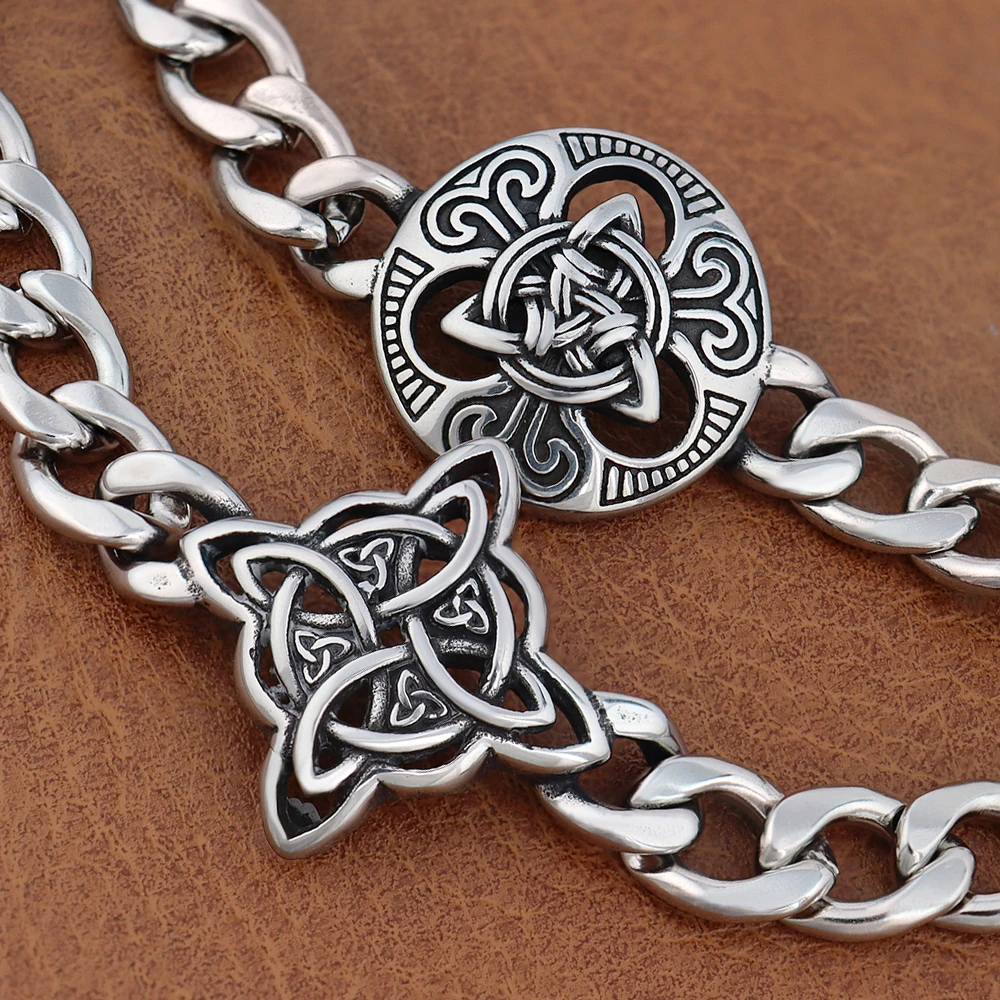 Bracciale a catena con nodo strega nordico alla moda Braccialetti con nodo celtico vichinghi in acciaio inossidabile di alta qualità per gioielli da uomo e donna 1Bracciale a catena con nodo strega nordico alla moda Braccialetti con nodo celtico vichinghi in acciaio inossidabile di alta qualità per gioielli da uomo e donna
