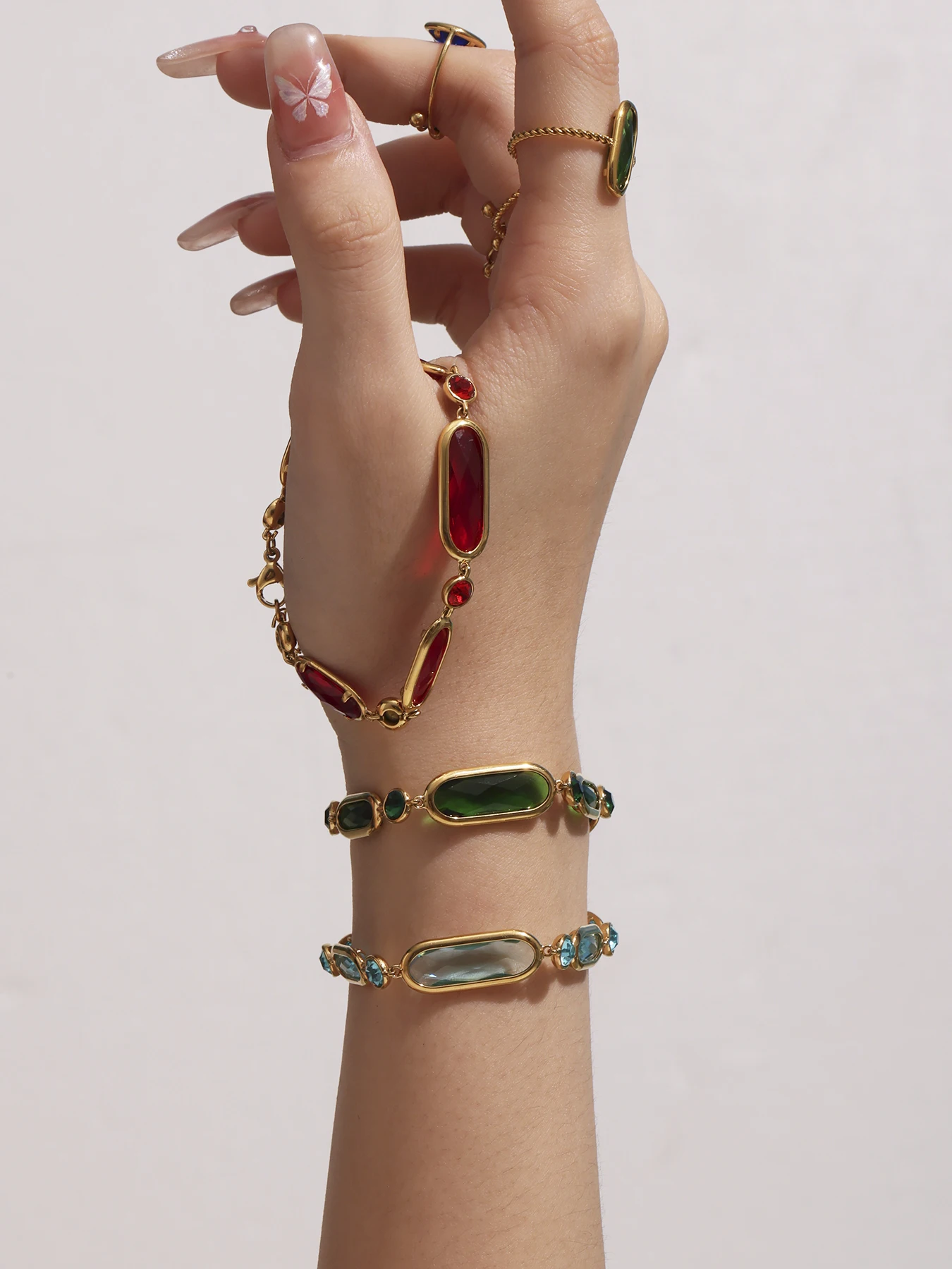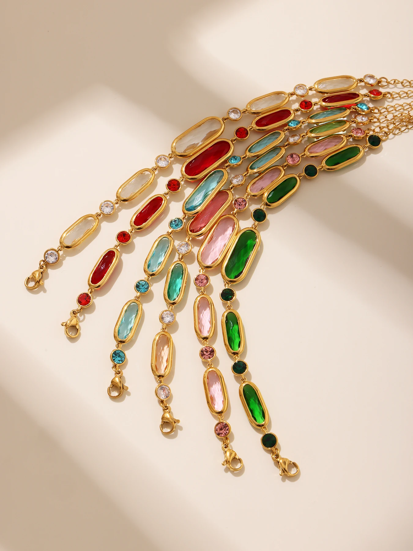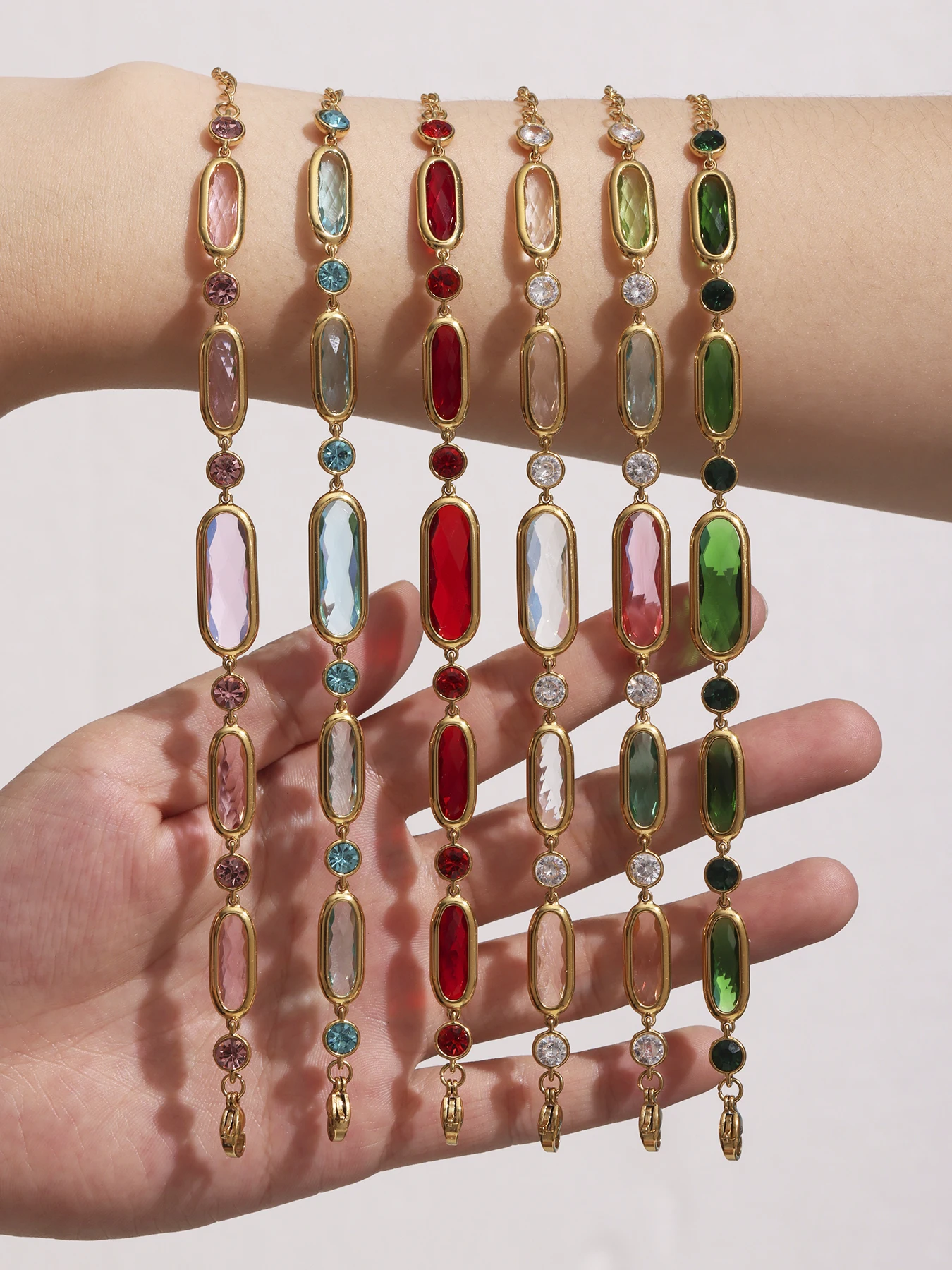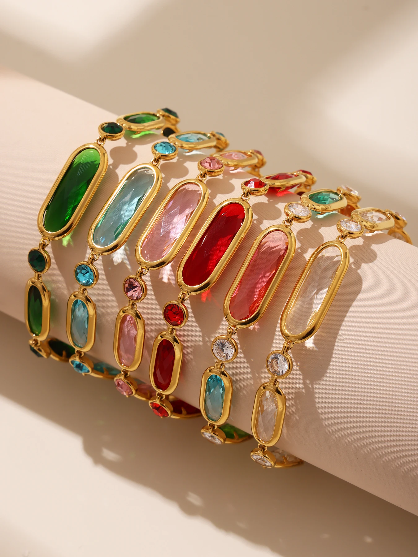 Bracciale in acciaio inossidabile colorato ovale lungo con ruota panoramica per donna, pietre di vetro ceche di lusso, gioielli affascinanti placcati in oro