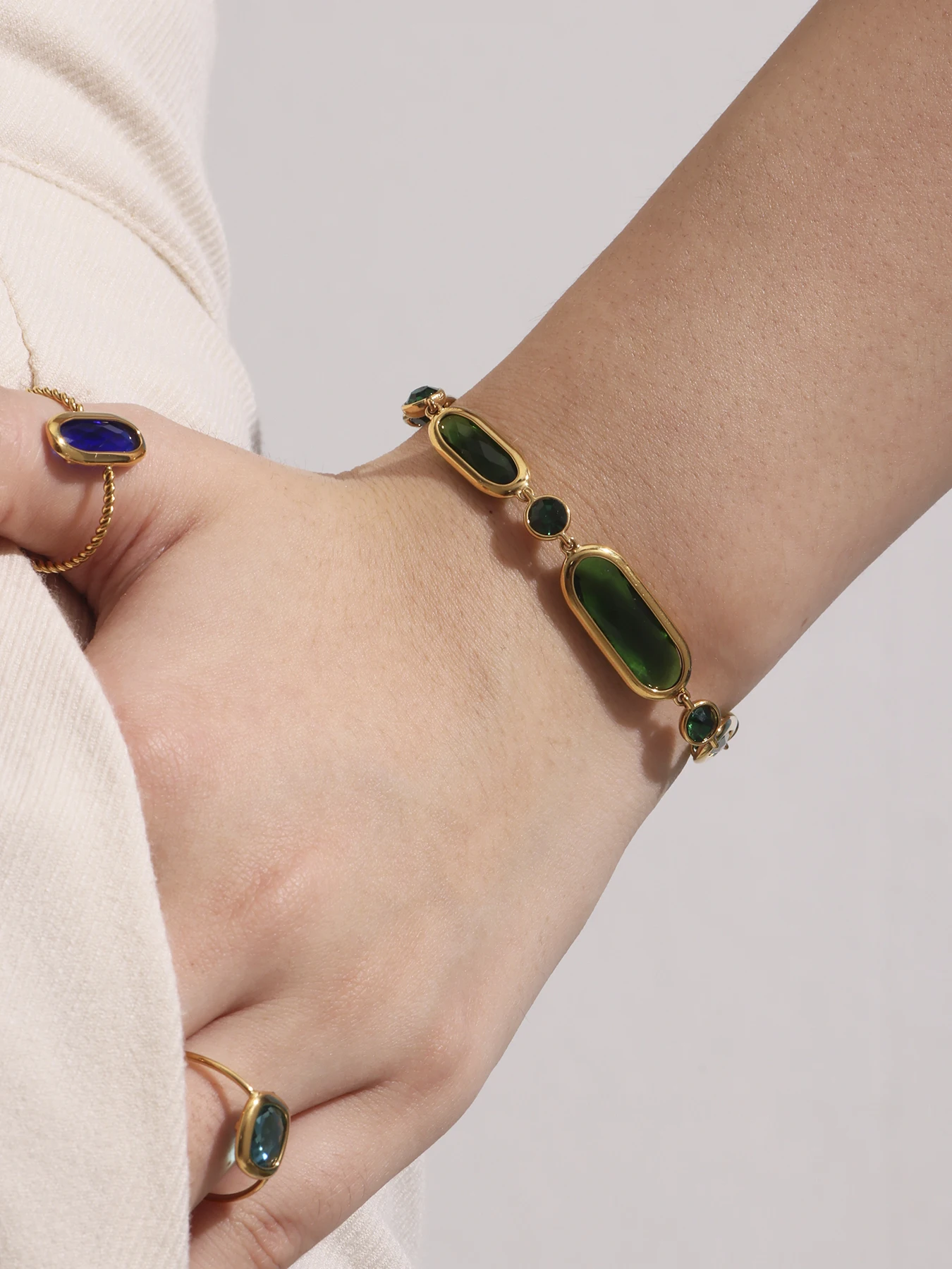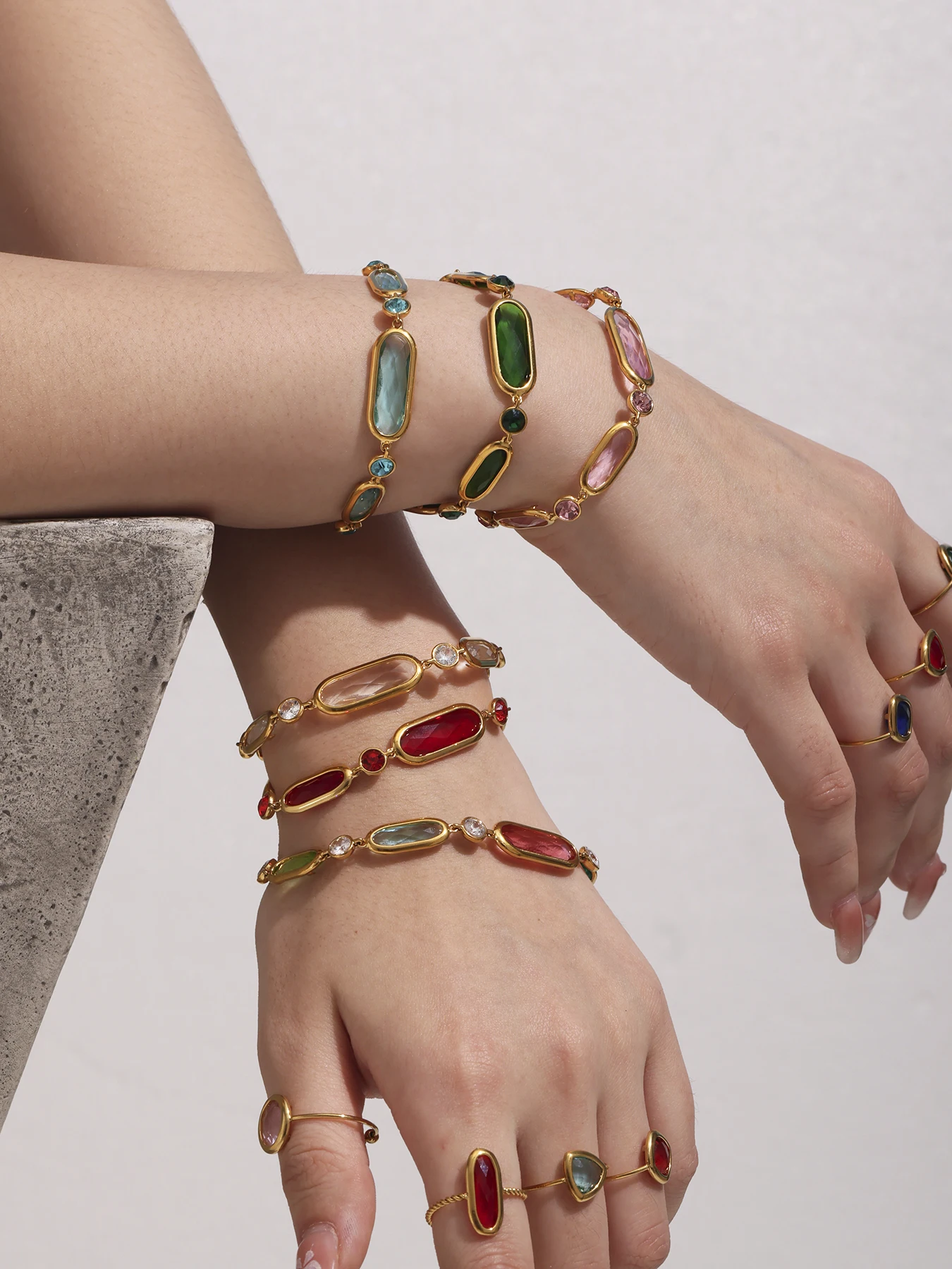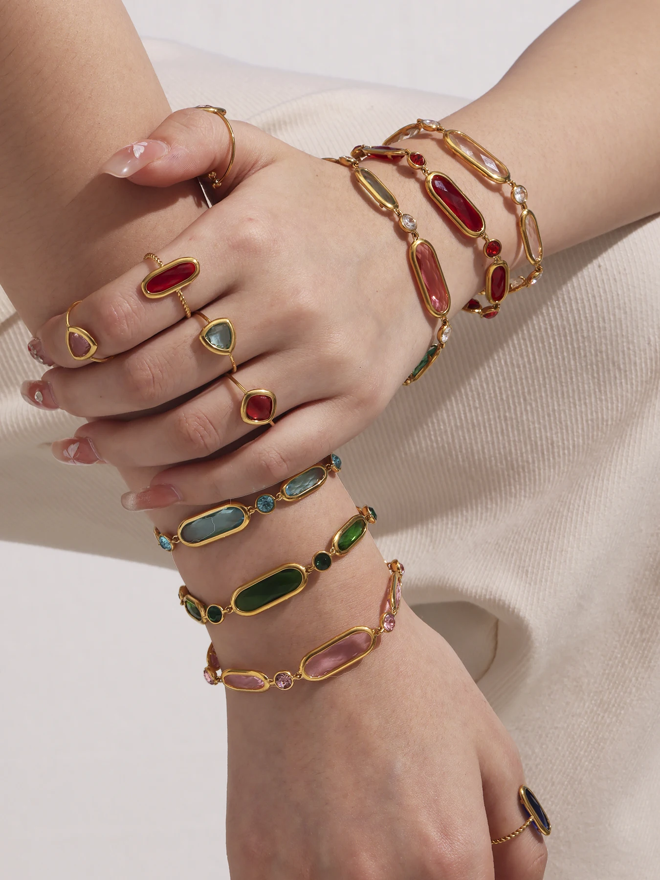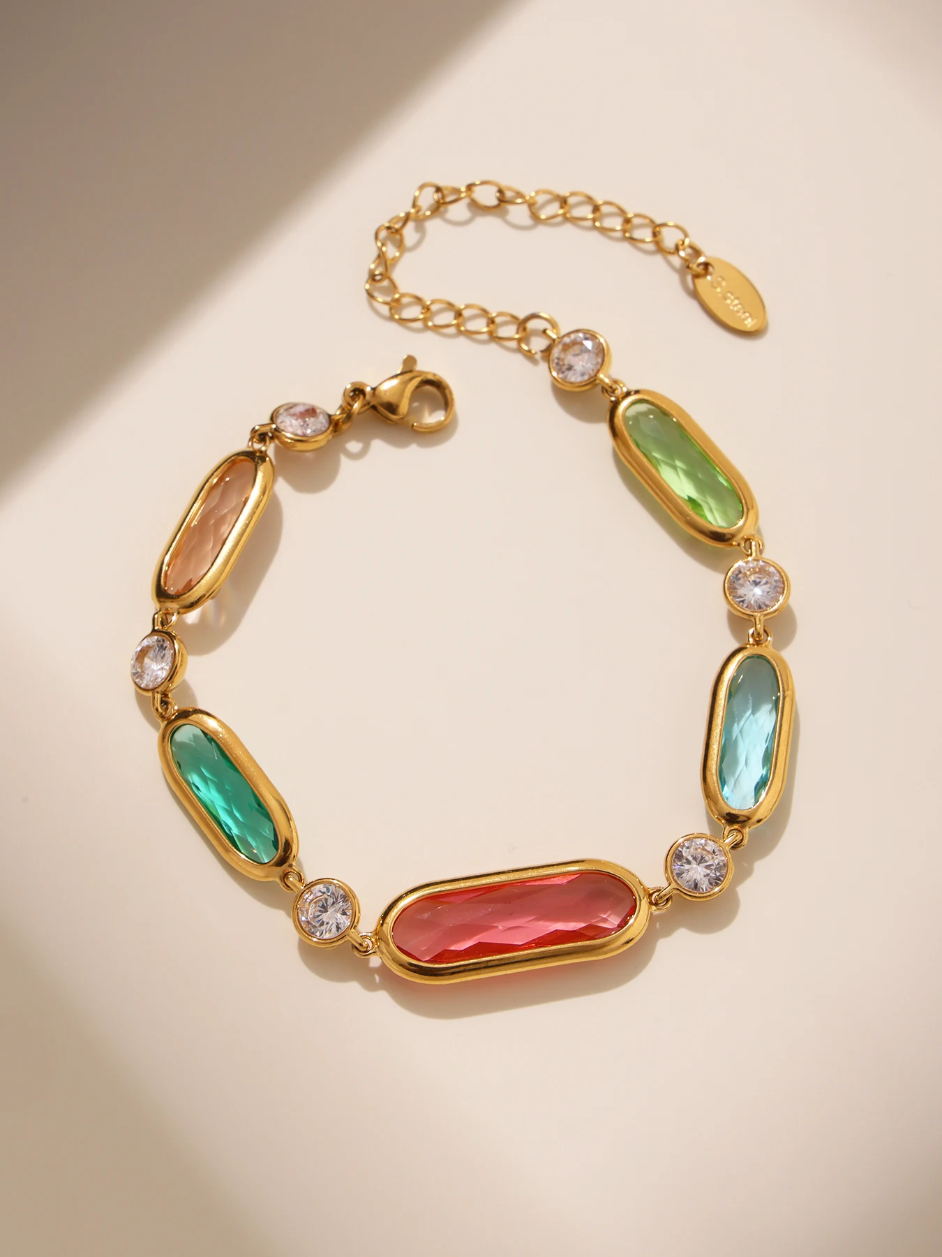 Bracciale in acciaio inossidabile colorato ovale lungo con ruota panoramica per donna, pietre di vetro ceche di lusso, gioielli affascinanti placcati in oro