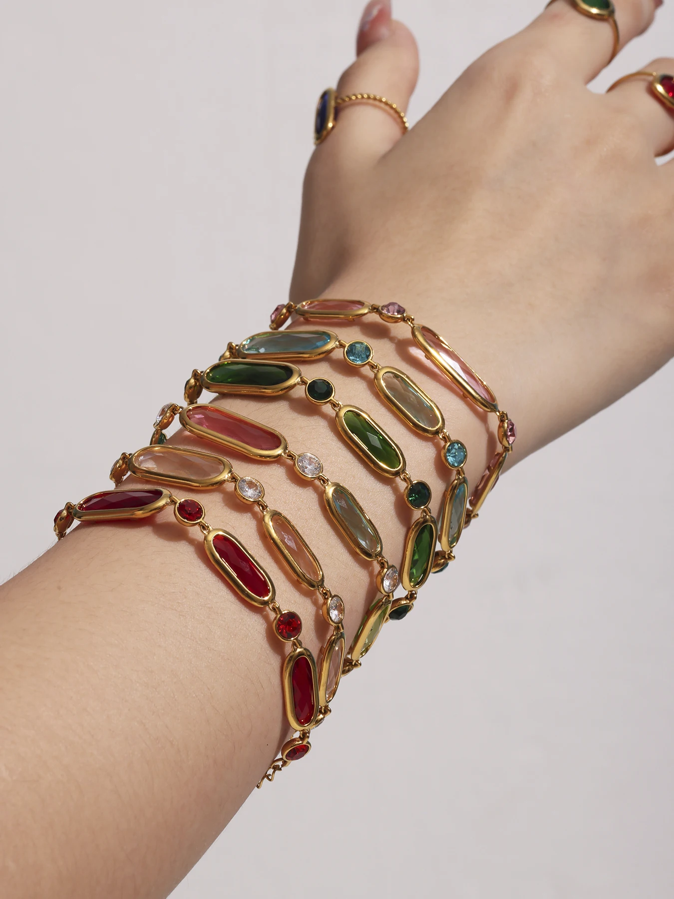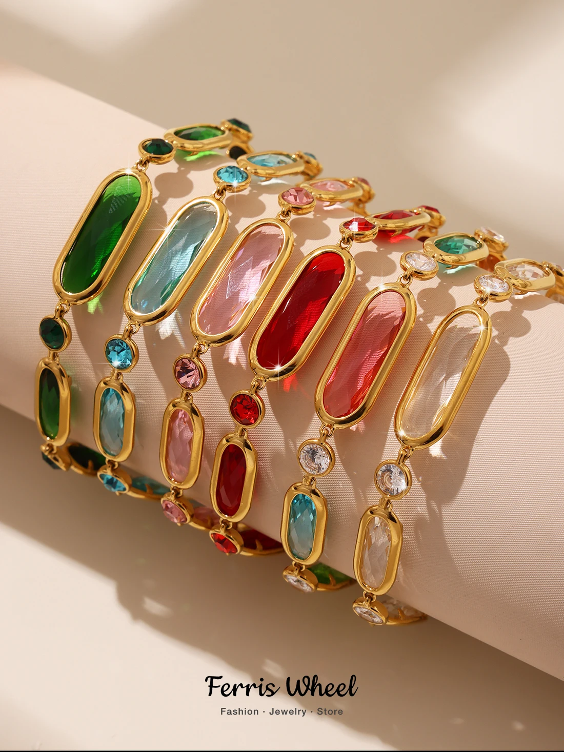 Bracciale in acciaio inossidabile colorato ovale lungo con ruota panoramica per donna, pietre di vetro ceche di lusso, gioielli affascinanti placcati in oro