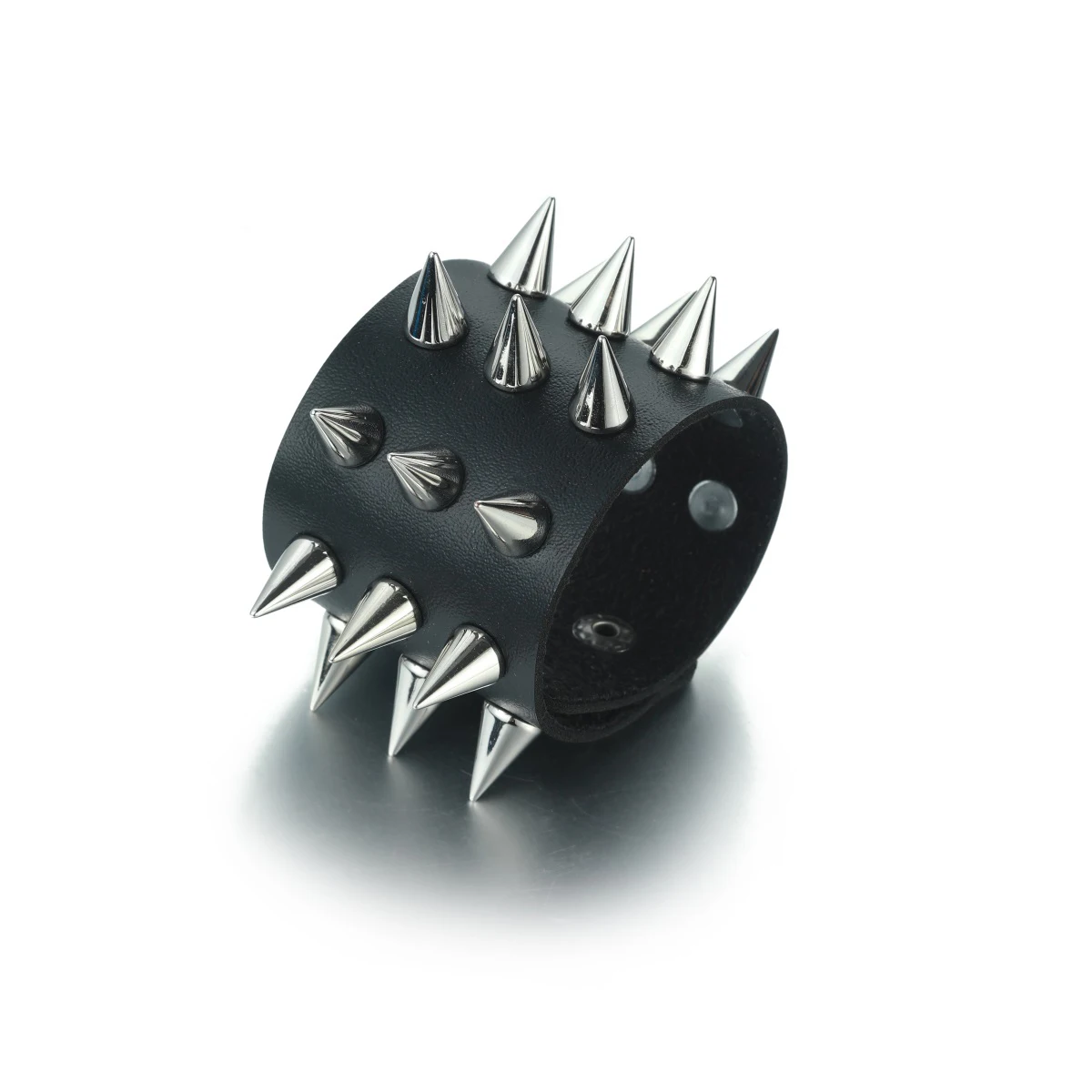 Braccialetti in pelle con borchie punk Polsini a spillo Polsino nero Uomo Donna Gioielli gotici Accessori gotici Emo