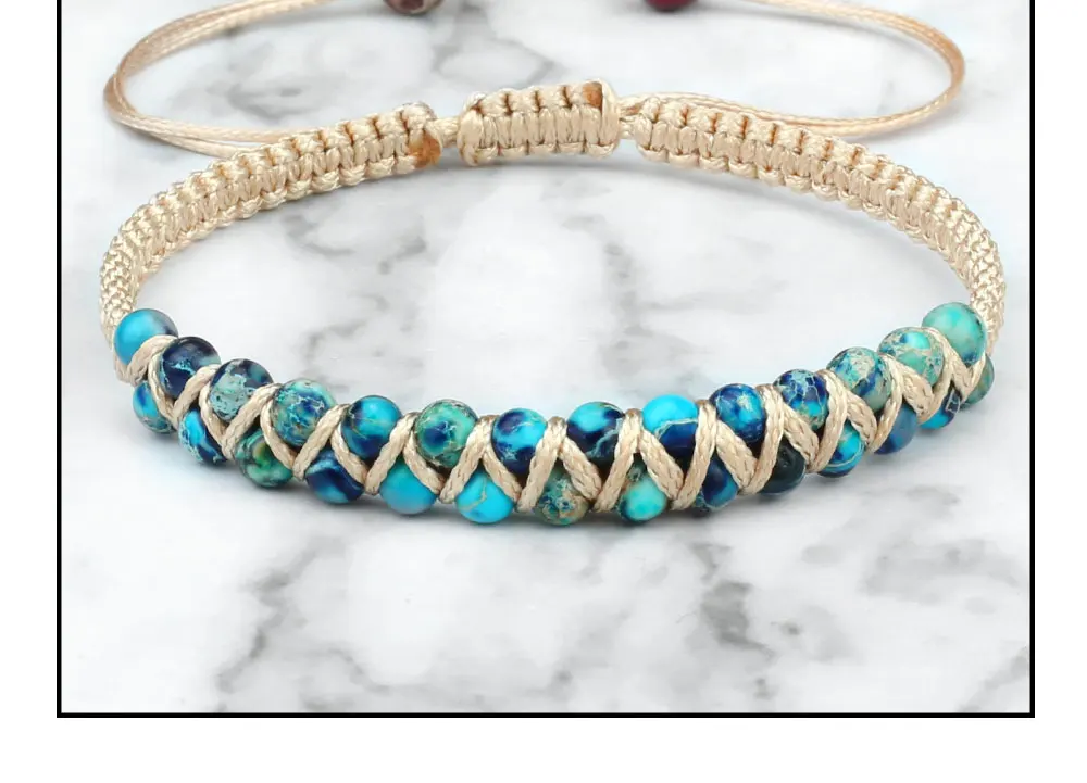 Bracciale intrecciato con perline di diaspro africano 3 * 6mm Bracciale intrecciato fatto a mano in pietra naturale Boho Yoga Bracciale con ciondoli Donna Uomo Gioielli di moda