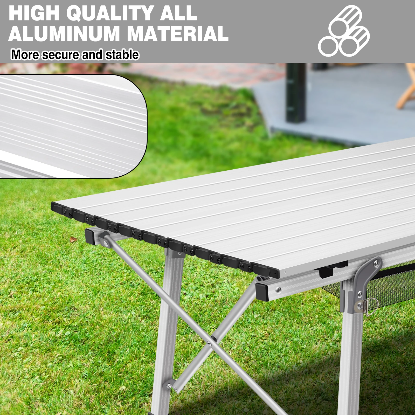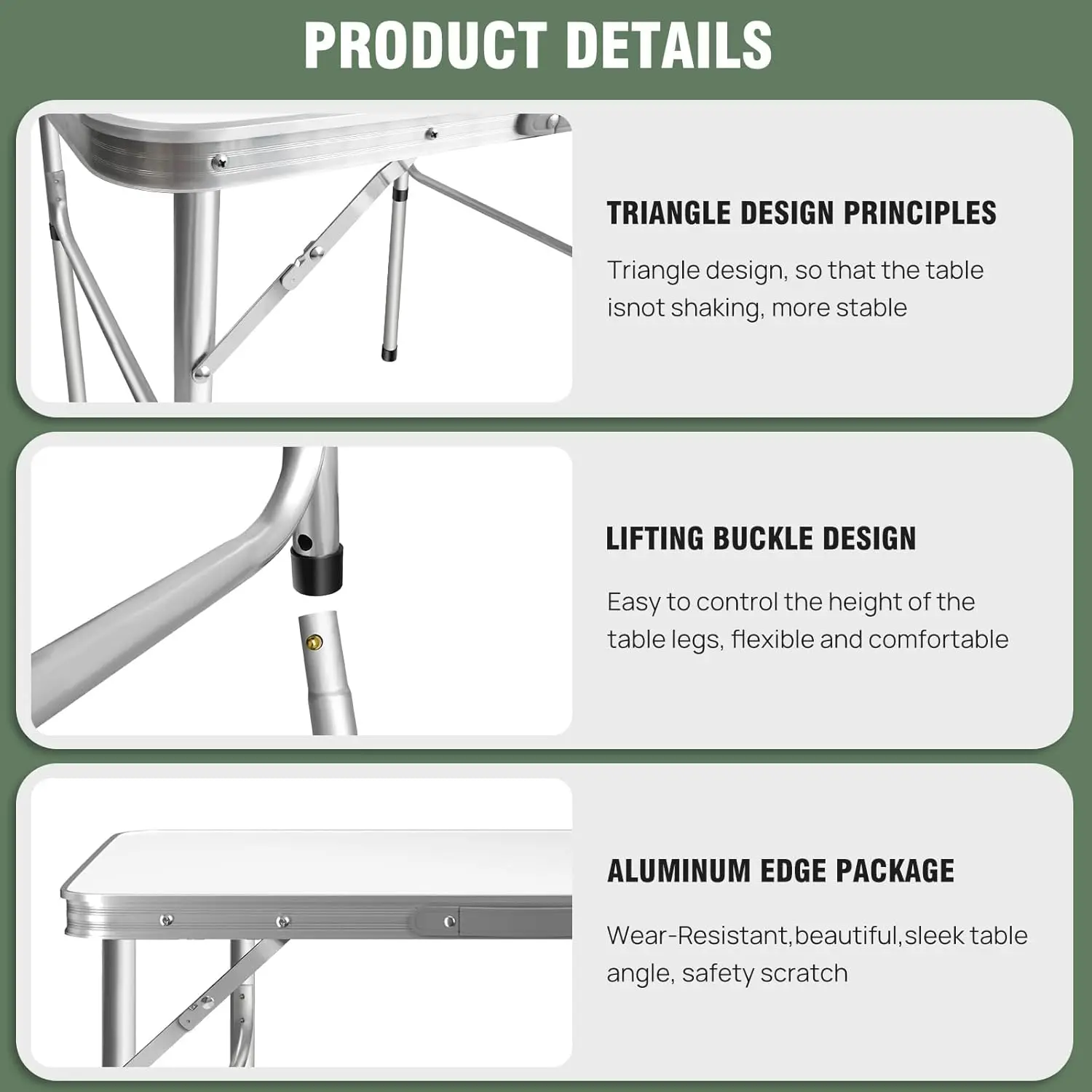 Materiali di alta qualità: il tavolo da picnic pieghevole è realizzato con materiali come alluminio, che è robusto, durevole, impermeabile e antimacchia.Il design dall’aspetto semplice ed elegante del tavolo pieghevole artigianale rende la scelta migliore.