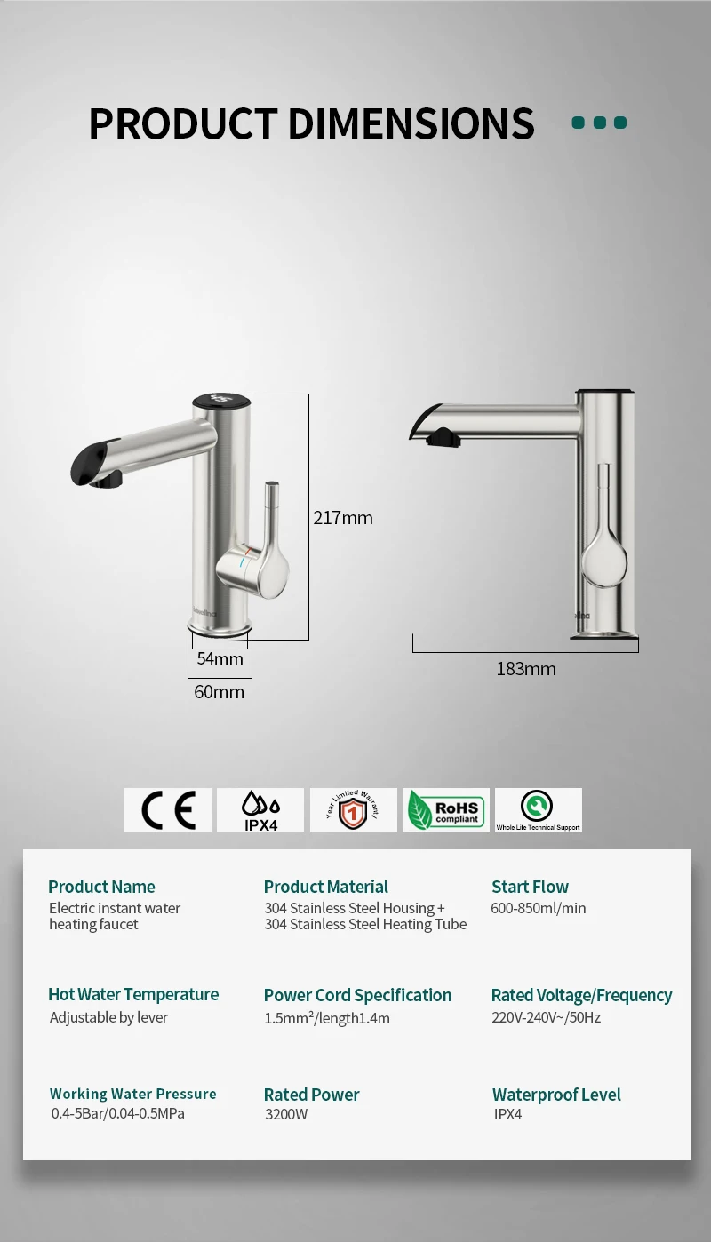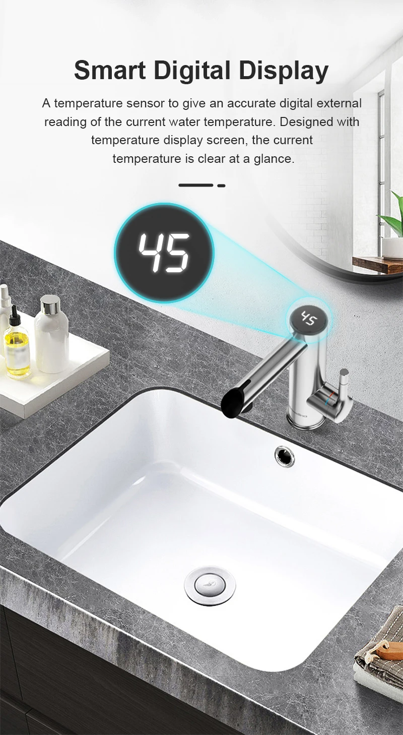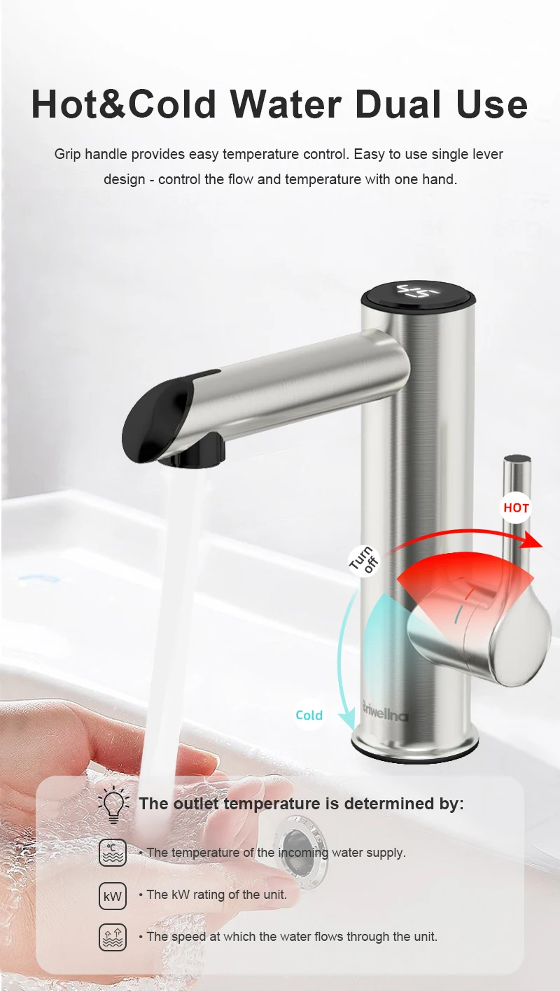 La temperatura dell’uscita dell’acqua calda depende della temperatura dell’acqua da ingresso bene come volume del flusso d’acqua.È variato in diverse situazioni e possono essere regolati facilmente da girare la leva.
