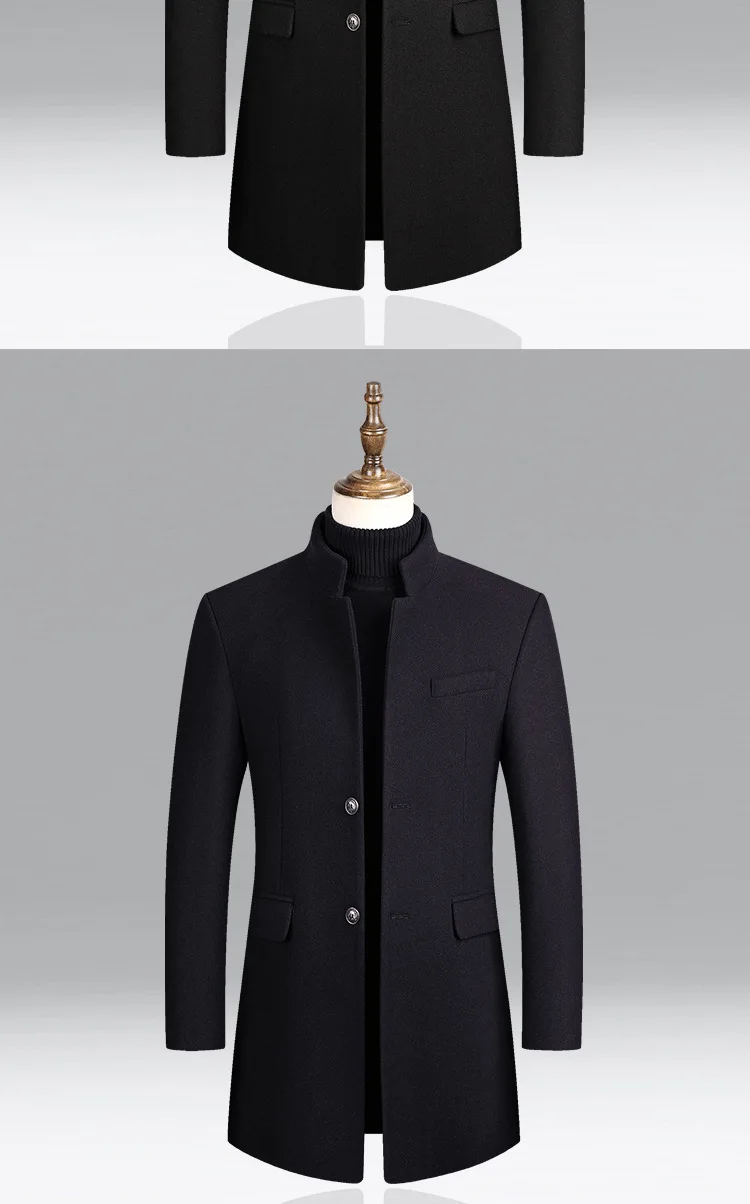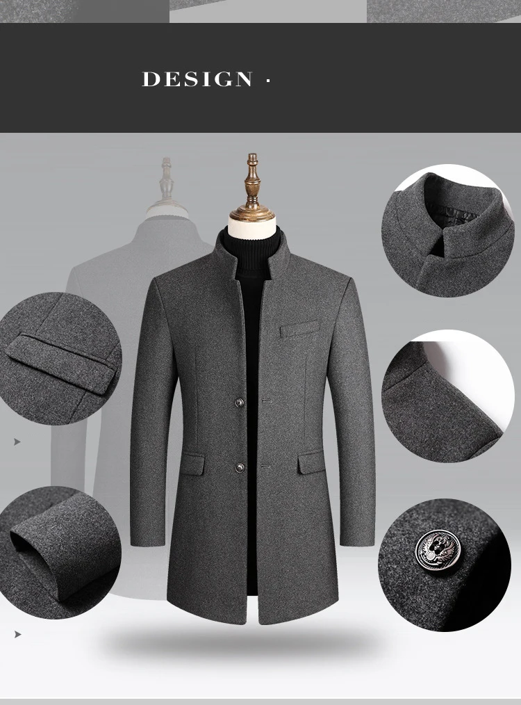 BROWON Brand Business Casual Trench Coat Uomo Stile cinese Tinta unita Cappotto invernale Uomo 2025 Autunno e inverno Cappotto di lana per uomo
