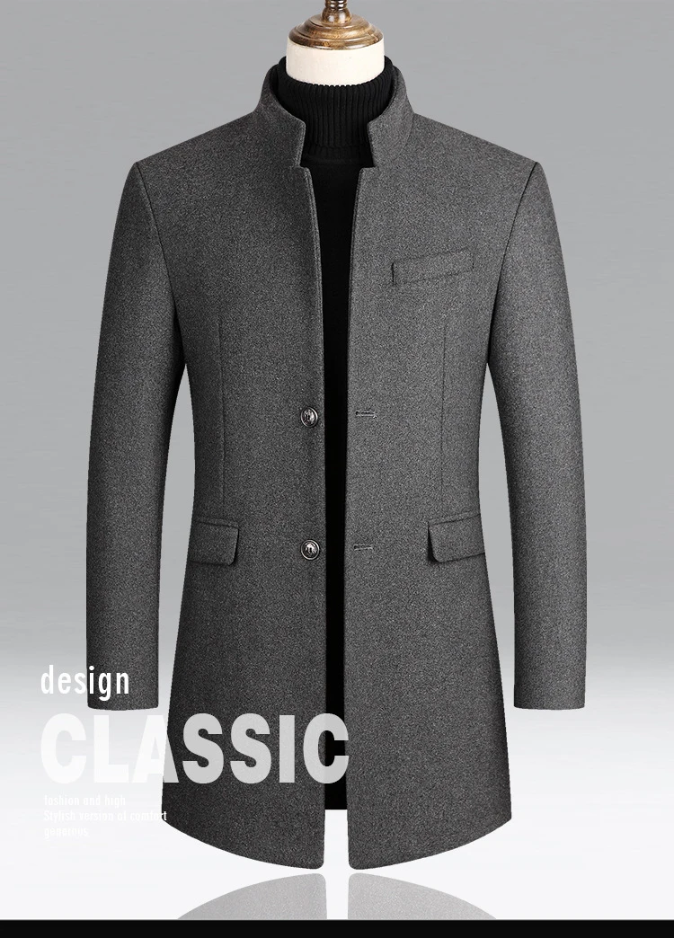 BROWON Brand Business Casual Trench Coat Uomo Stile cinese Tinta unita Cappotto invernale Uomo 2025 Autunno e inverno Cappotto di lana per uomo 1BROWON Brand Business Casual Trench Coat Uomo Stile cinese Tinta unita Cappotto invernale Uomo 2025 Autunno e inverno Cappotto di lana per uomo
