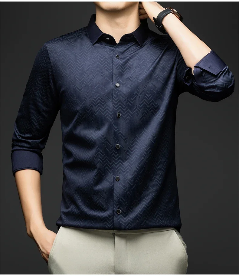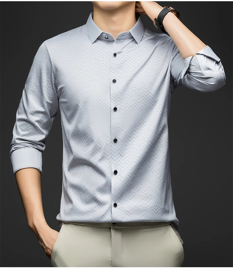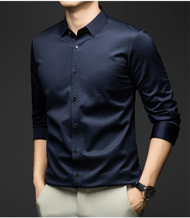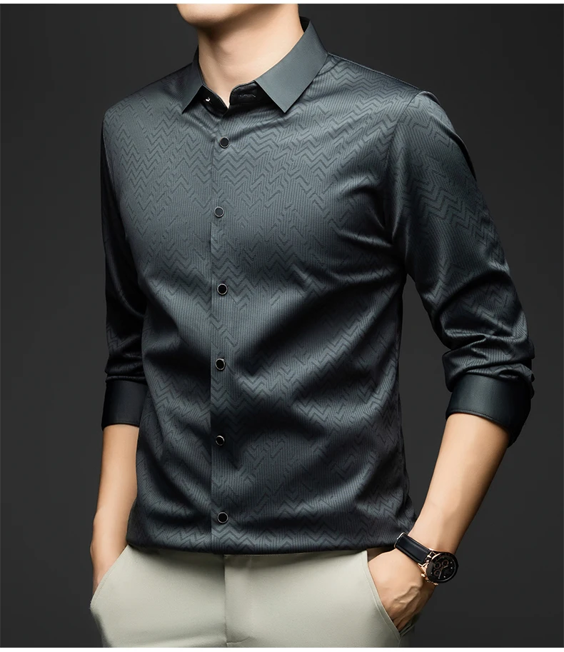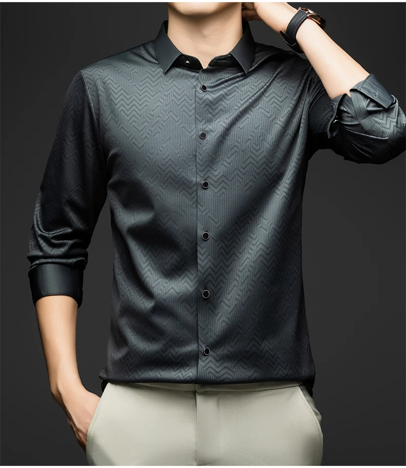 BROWON Camicia da uomo a maniche lunghe Autunno 2025 Nuovo colore solido Camicia casual di lusso Uomo Business Office Camicie slim per uomo Abbigliamento 1BROWON Camicia da uomo a maniche lunghe Autunno 2025 Nuovo colore solido Camicia casual di lusso Uomo Business Office Camicie slim per uomo Abbigliamento