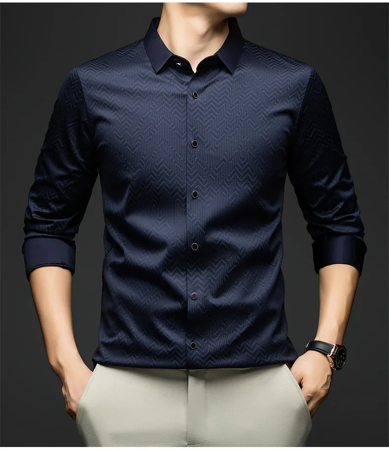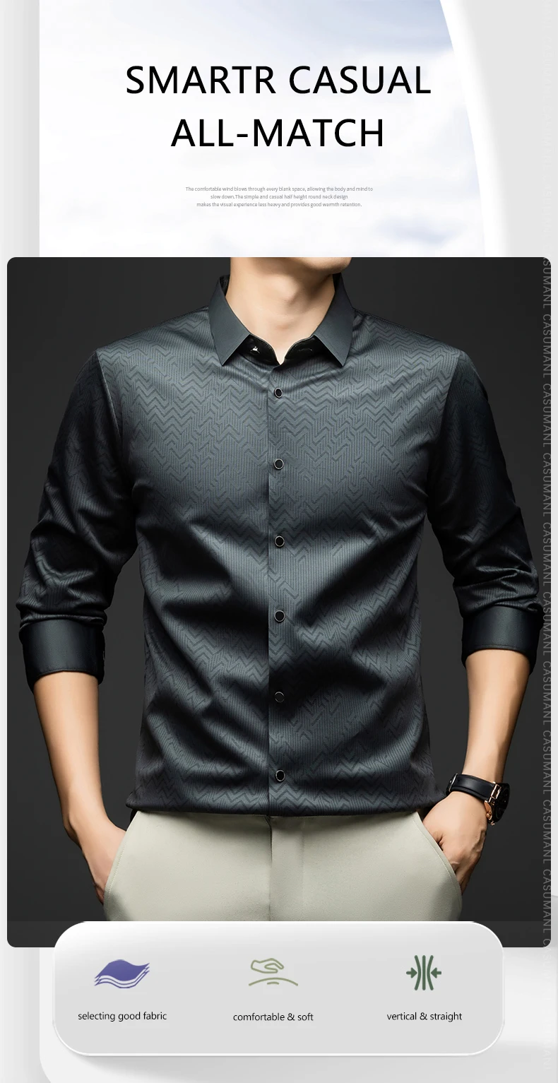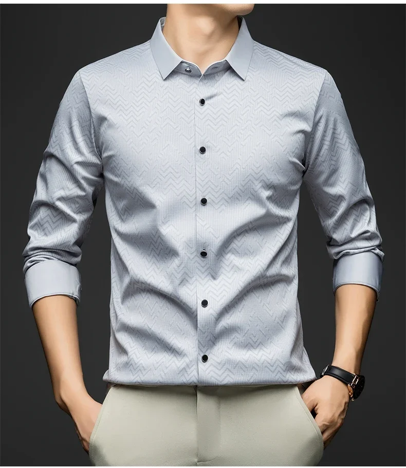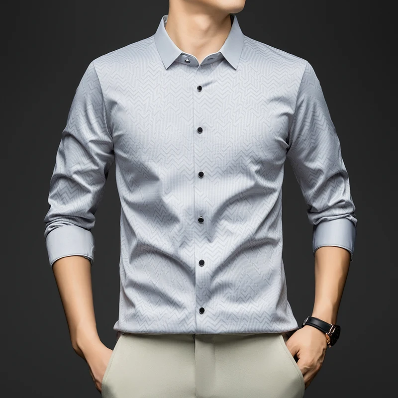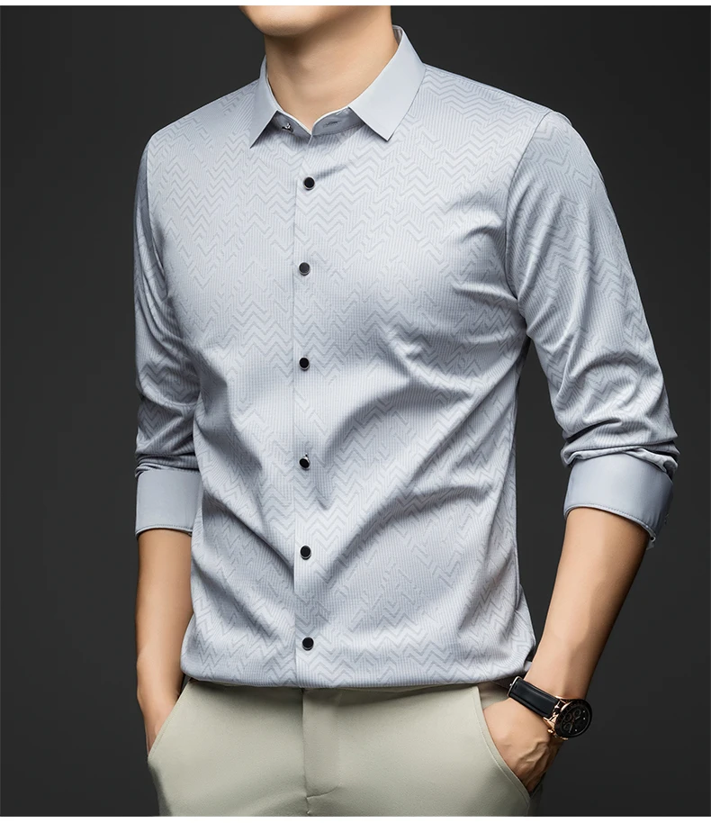 BROWON Camicia da uomo a maniche lunghe Autunno 2025 Nuovo colore solido Camicia casual di lusso Uomo Business Office Camicie slim per uomo Abbigliamento