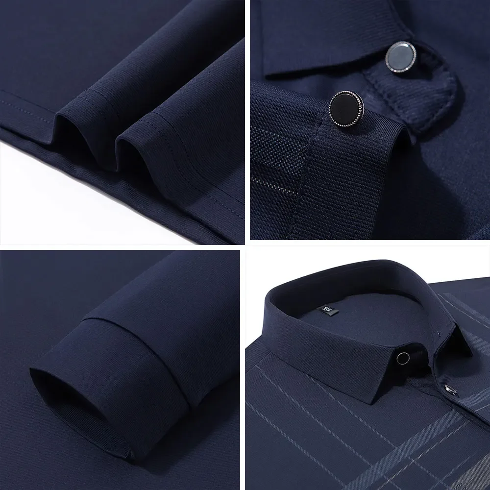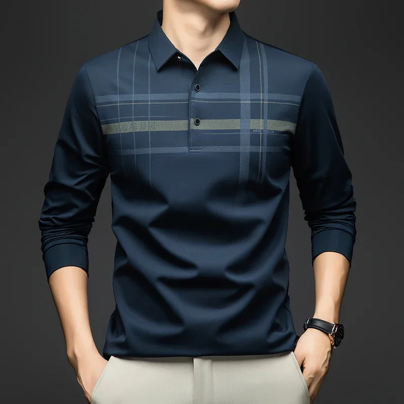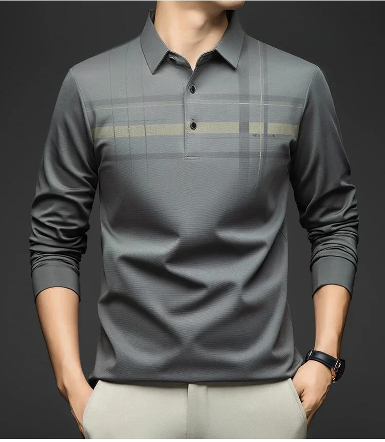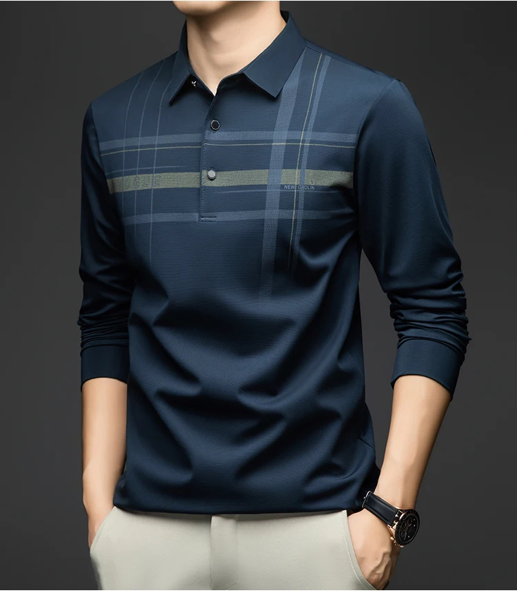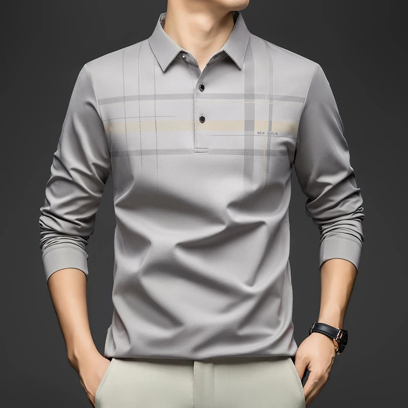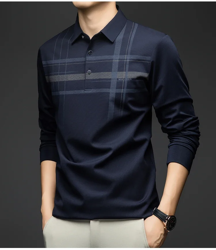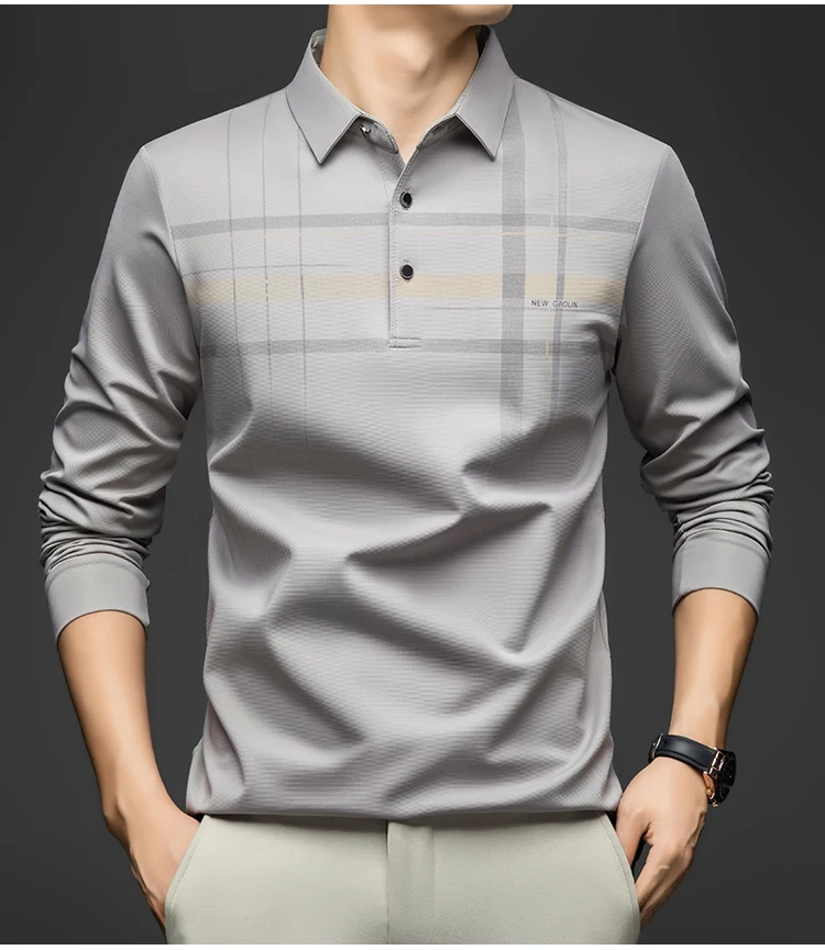 BROWON Polo T Shirt per uomo 2025 Formale Business Slim Maglietta a maniche lunghe da uomo Casual Camicia a righe larghe per uomo Abiti firmati