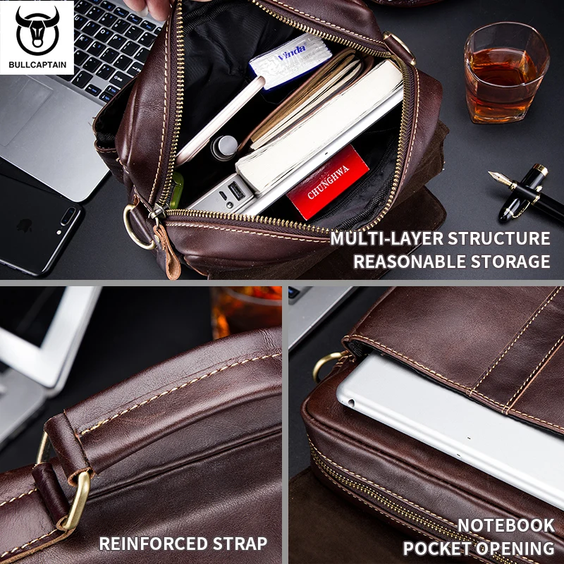 BULLCAPTAIN Borsa a tracolla in pelle da uomo, borsa a tracolla da lavoro retrò, borsa per studenti giovanili casual alla moda di grande capacità