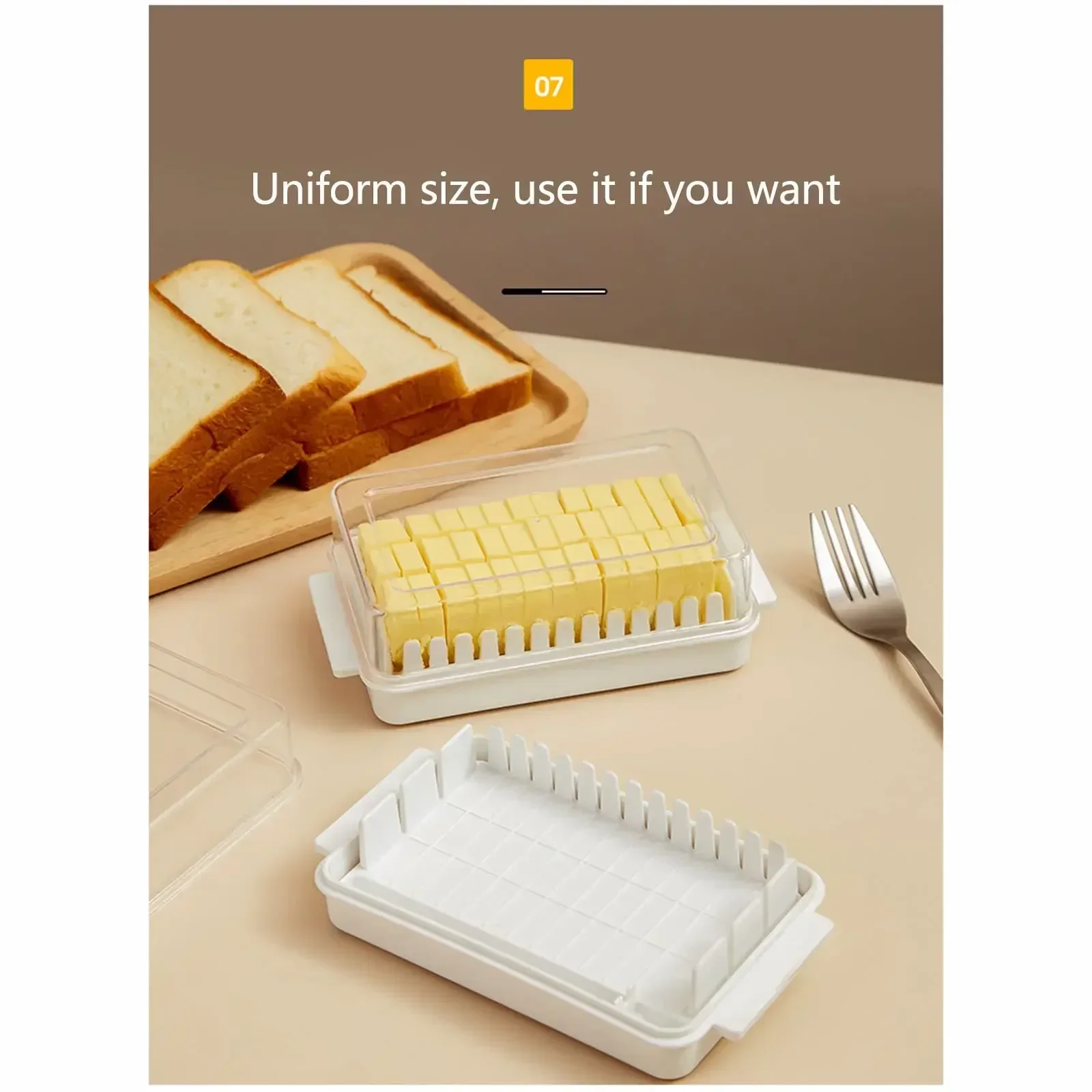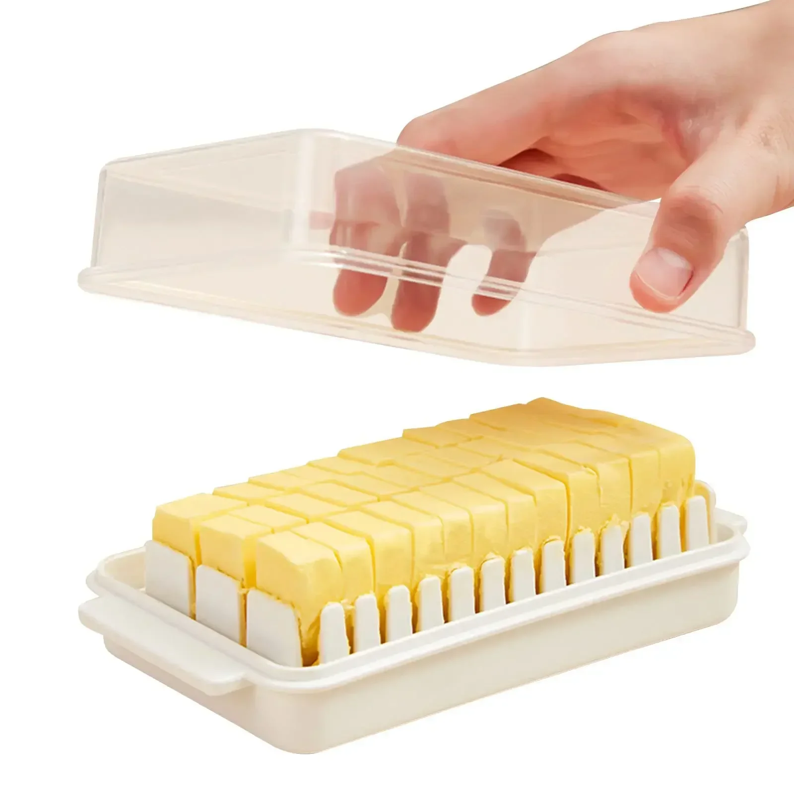 La scatola interna del burro ha guide di taglio che tagliare il burro rapidamente e uniformemente per ottenere una visualizzazione accurata, che può essere utilizzata per cuocere al forno, fumare o semplicemente spalmare una burro sul pane.