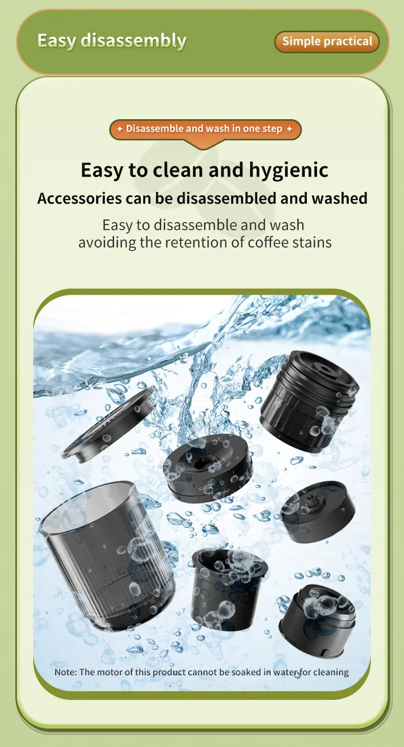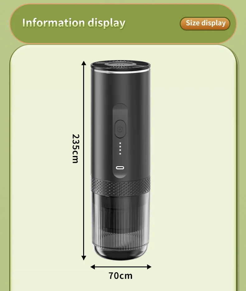 Alimentato da una batteria al litio ad alta densità, offre prestazioni costanti con una carica completa.Perfetto per il campeggio, i viaggi o i viaggi in auto: non preoccuparti mai di carenze di corrente.Abbraccia la vera libertà del caffè, ovunque tu vada!